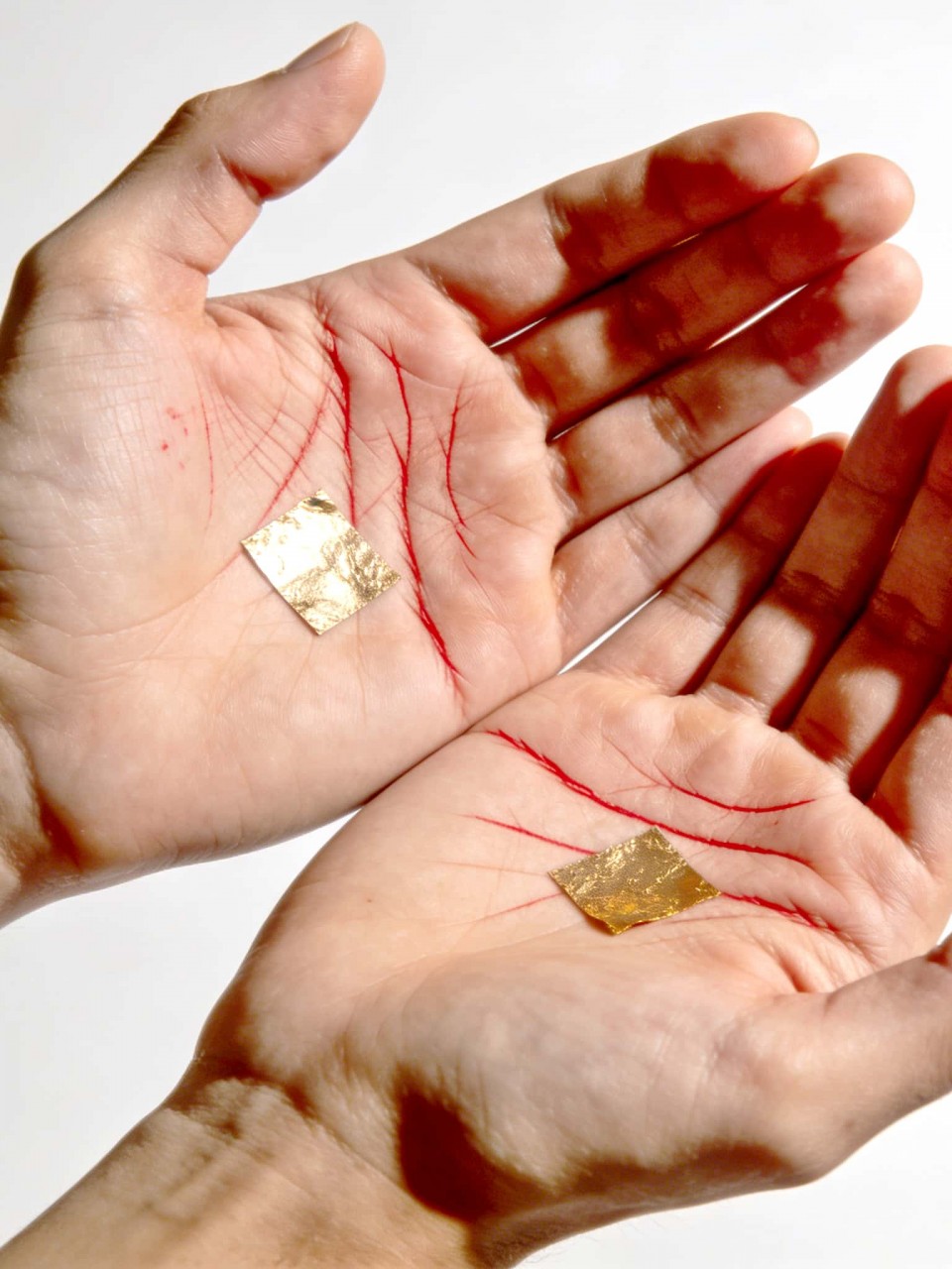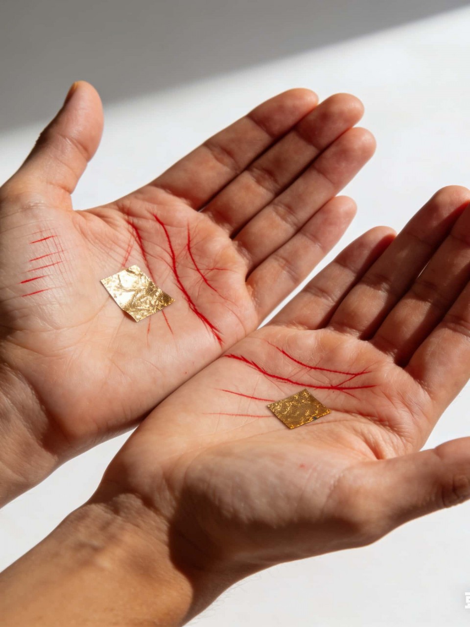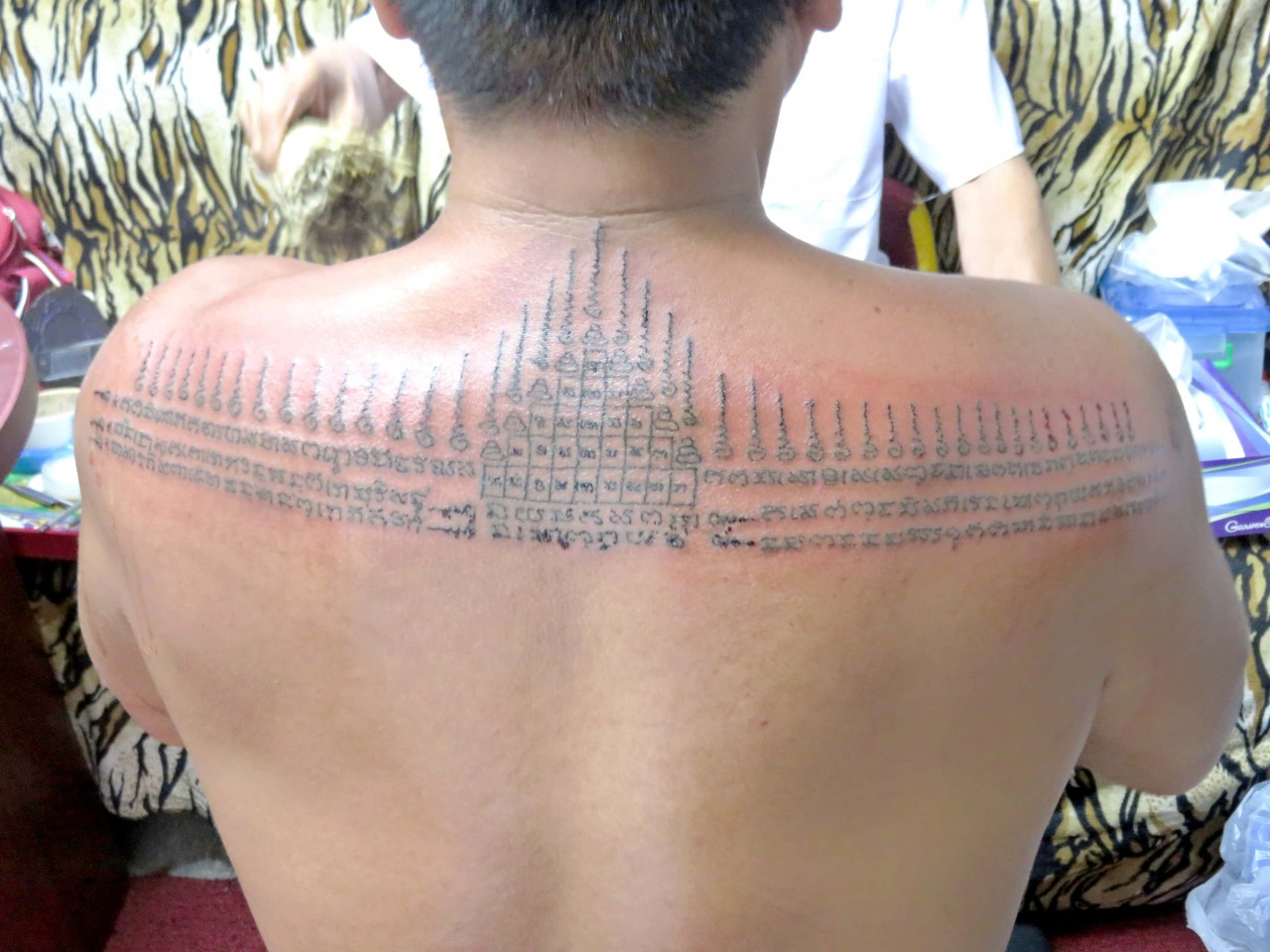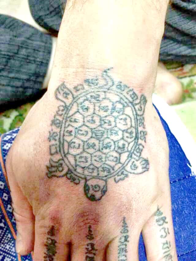 (阿贊喬師傅用獨有既法油為善信兩隻手掌刺上掌紋,改先天命格,以及改後天命格,刺上既法油都係透明無顏色既)
