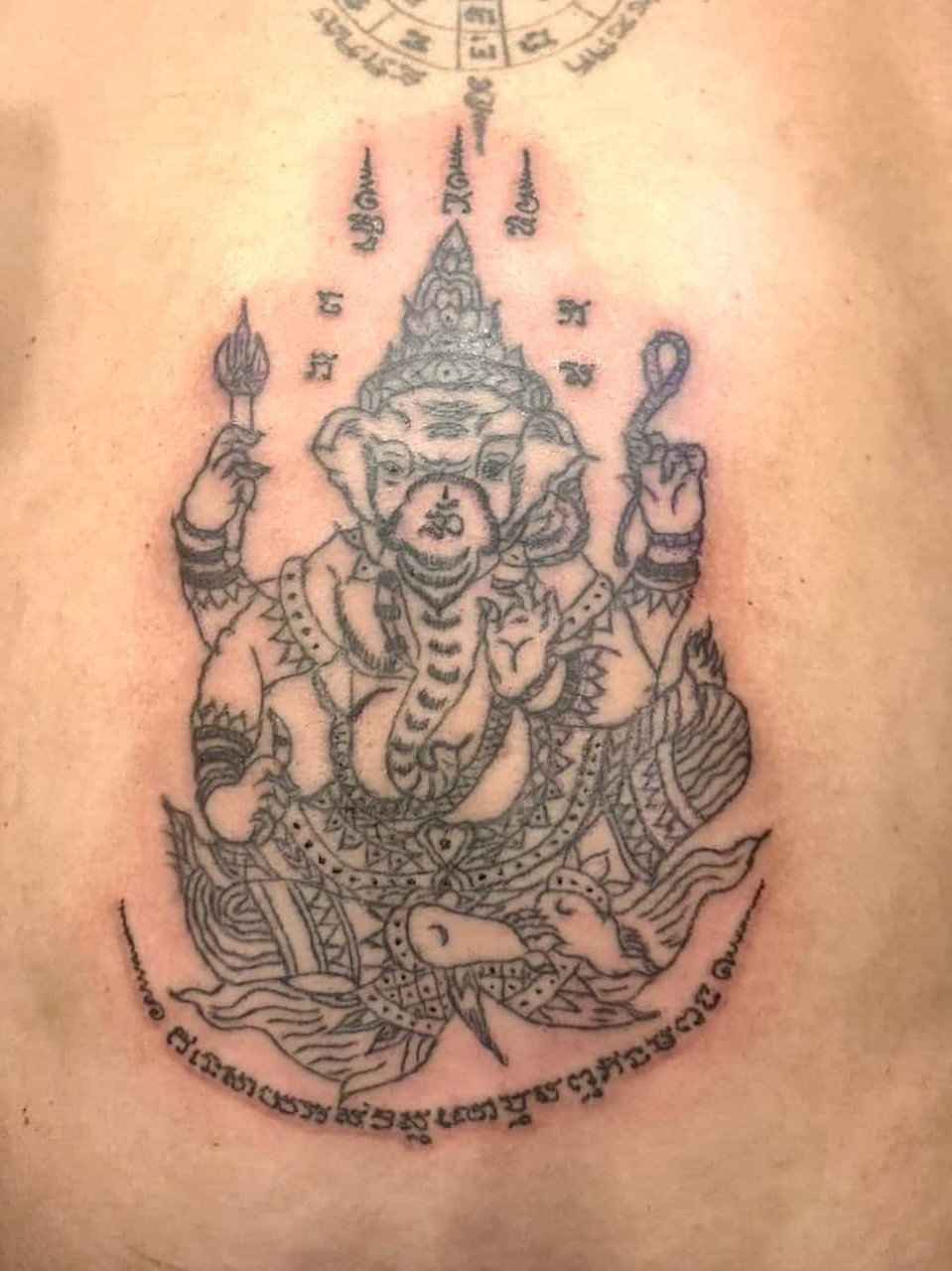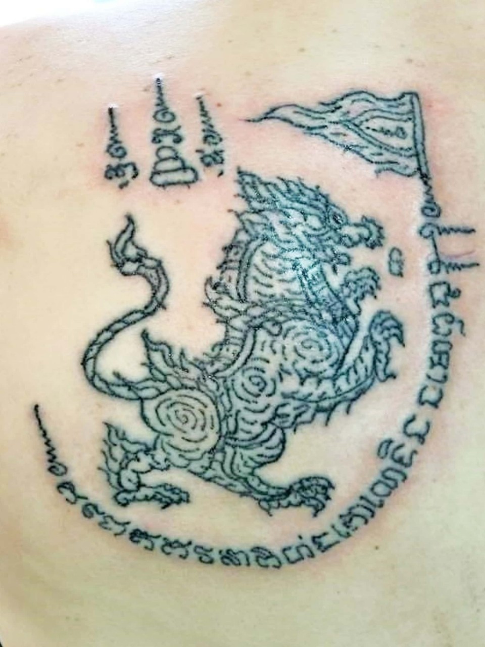 麒麟在泰國叫作(醒),在泰國麒麟被視為神獸,代表吉祥順利和錢財豐收,而師傅用上了招財法門及經文,能為善信提升財運及帶來豐厚收入、增強權力、地位、威嚴和說服力,得到別人的尊重,令善信工作及生意更上一層樓,增強生意運、財運、偏財運及橫財運並為善信帶來豐厚的財富收入,這個麒麟圖印因為不是天神相,所以可以刺在身體上的任何部位