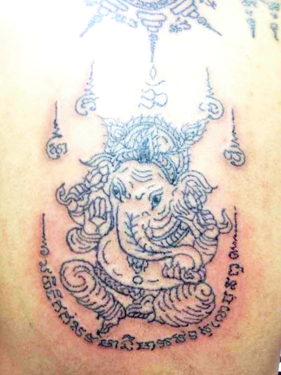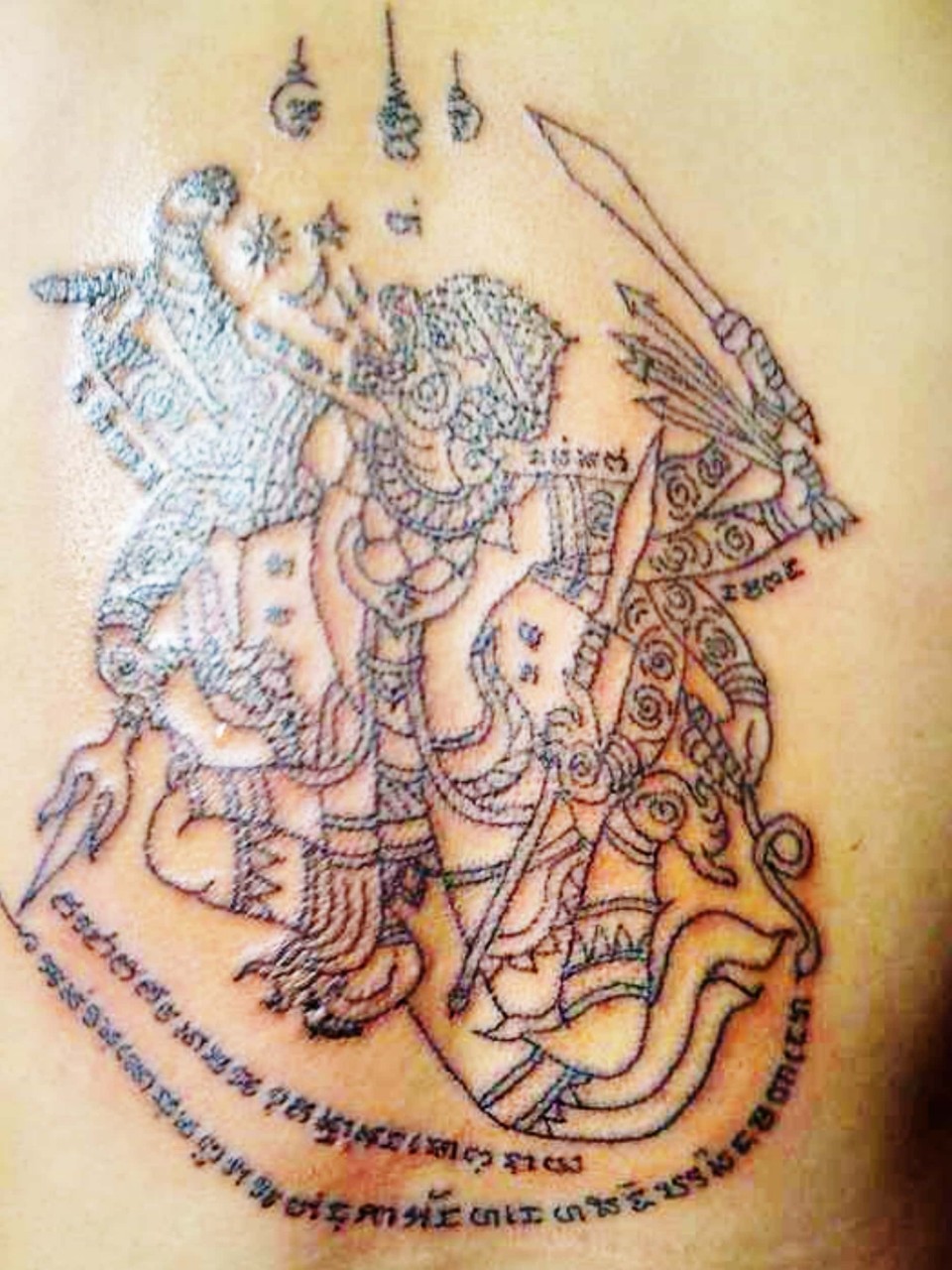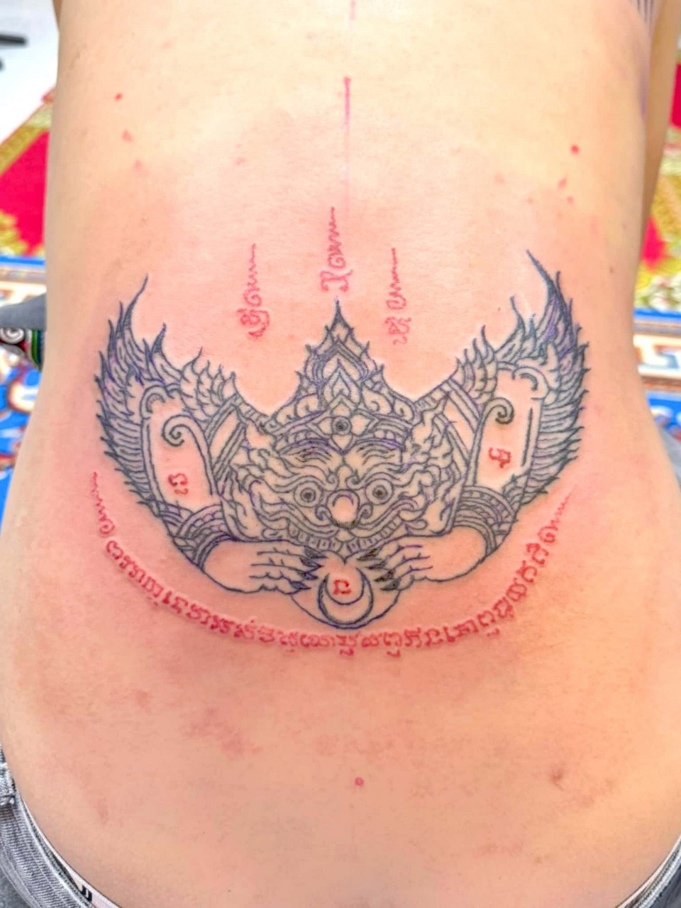 善信可以選擇油刺(透明無色)或 有色刺符,油刺(透明無色)是用古法金針在身上刺上符印,只是金針上不沾墨水,是使用法油刺上,所以刺出來圖印和符印都是沒有顏色的 ,所有刺符無論有色或油刺(透明無色),整個過程和功效都是完全一樣的,刺符不論是有色或無色都是永久有效的