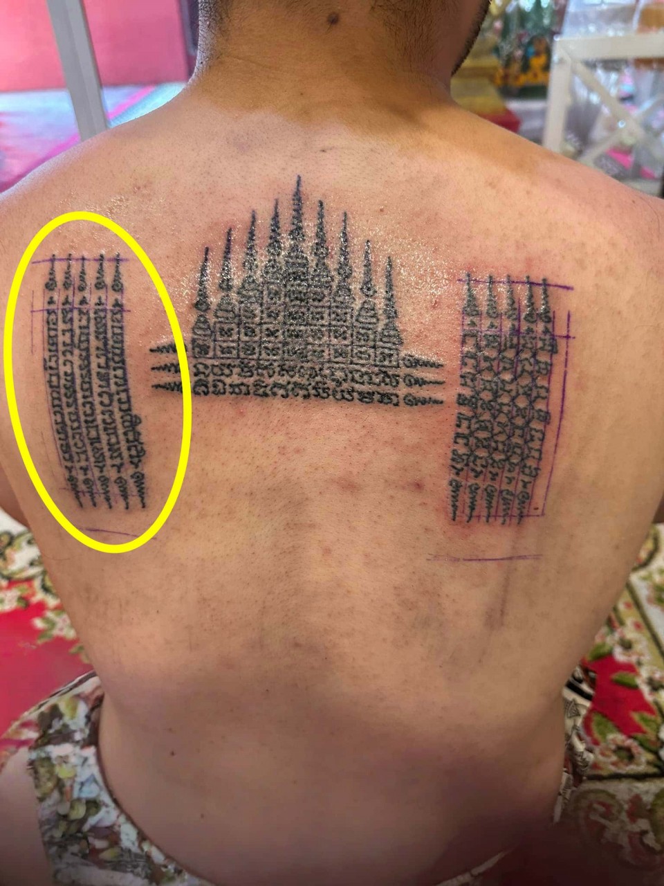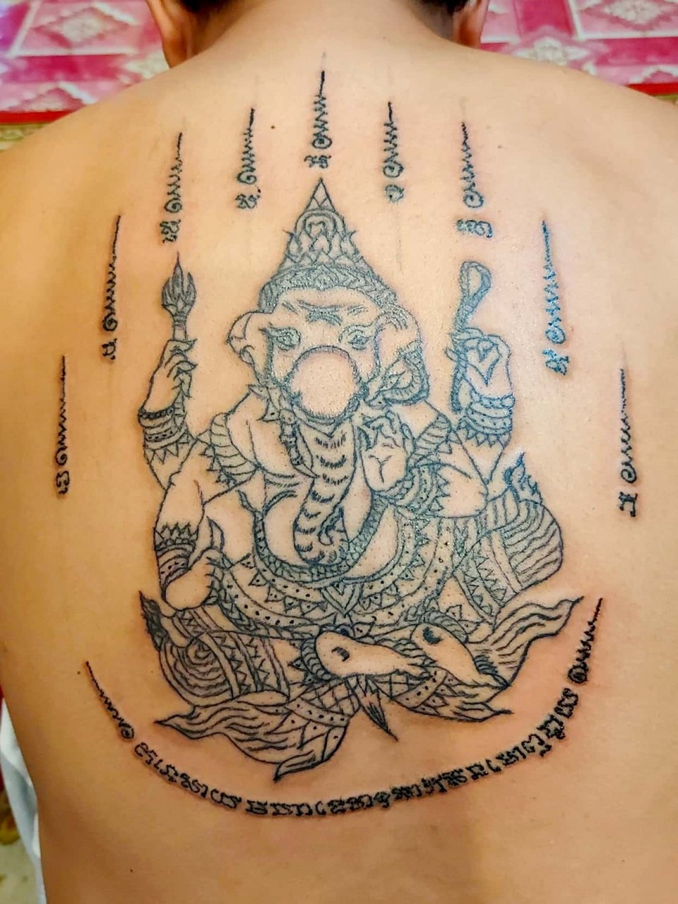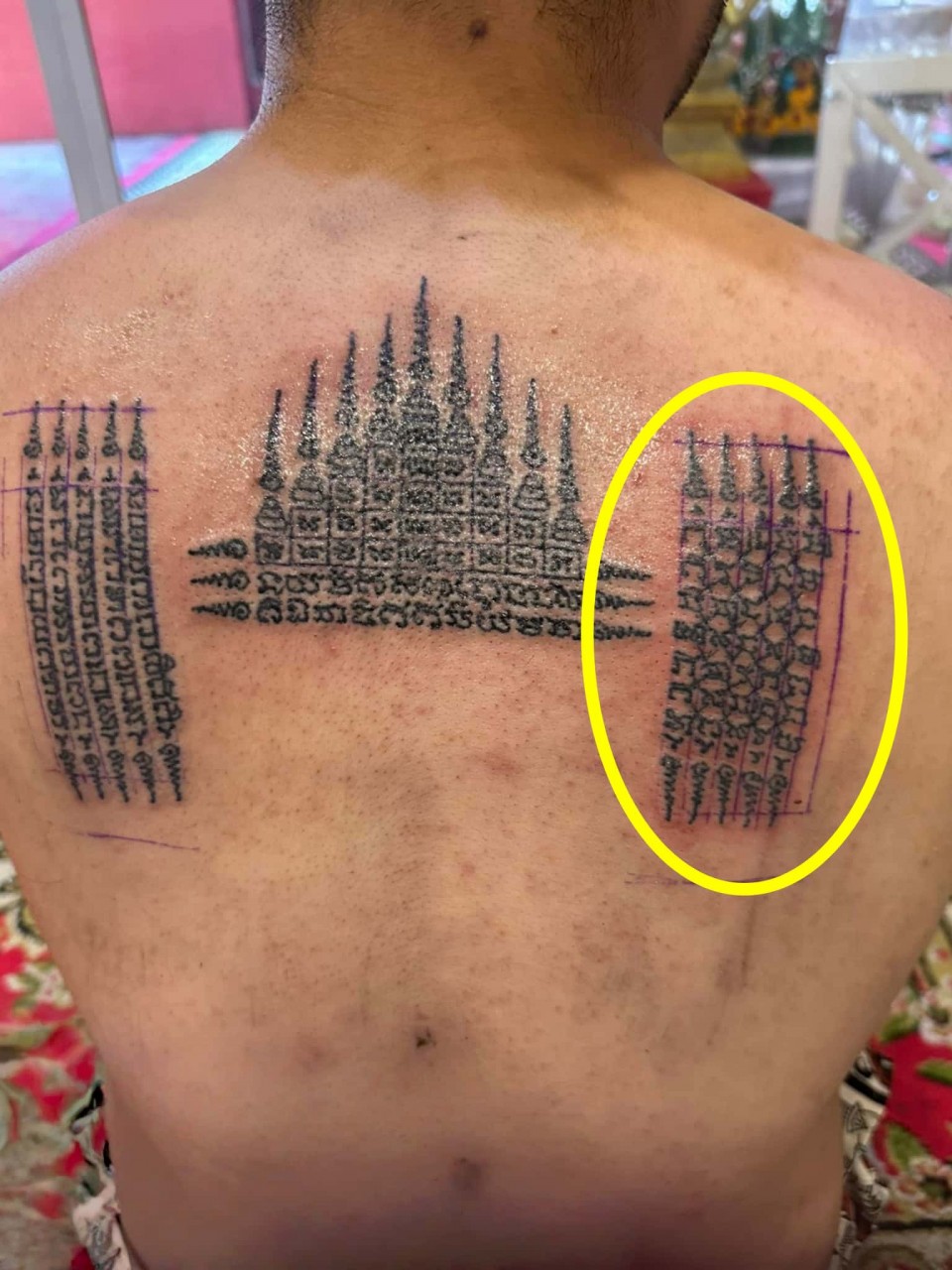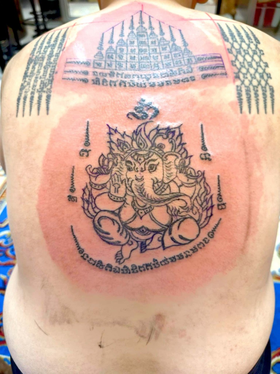 善信可以選擇油刺(透明無色)或 有色刺符,油刺(透明無色)是用古法金針在身上刺上符印,只是金針上不沾墨水,是使用法油刺上,所以刺出來圖印和符印都是沒有顏色的 ,所有刺符無論有色或油刺(透明無色),整個過程和功效都是完全一樣的,刺符不論是有色或無色都是永久有效的