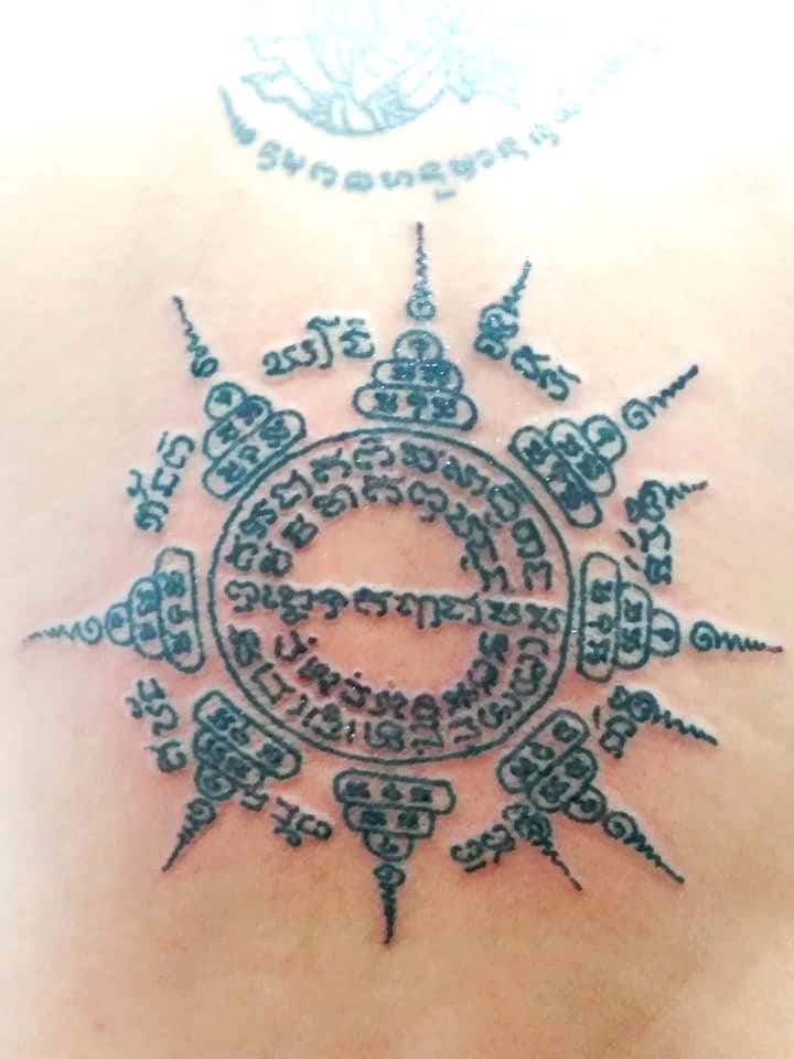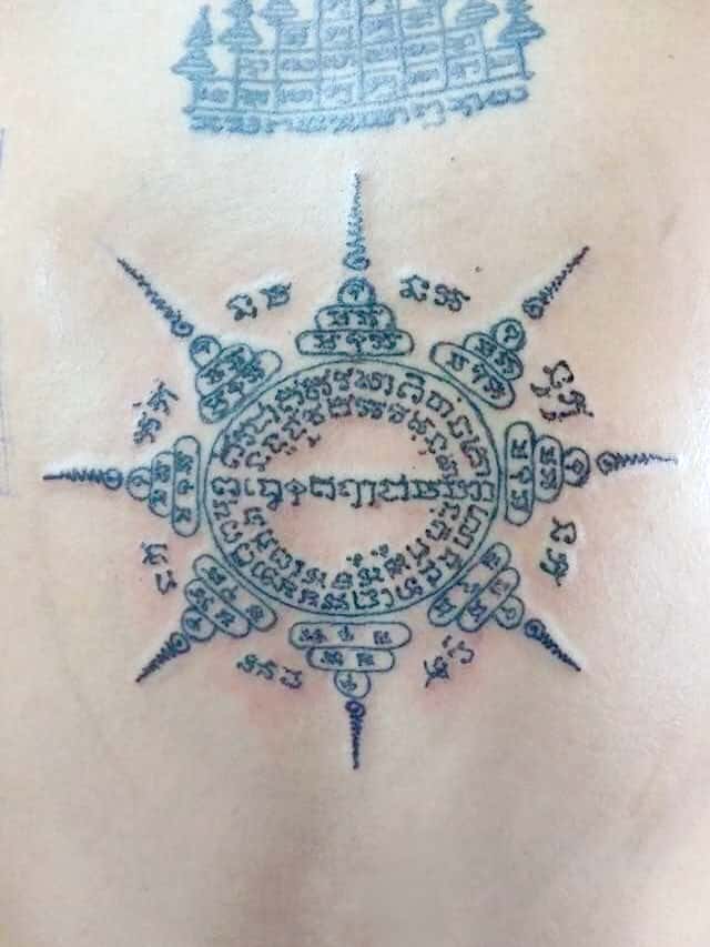 古時的泰國人一般第一個刺符都會選擇師傅符印,九層塔屬於師傅符印之一,就像一對打開力量泉源的門,亦必定是刺在背部並且是頸對落的位置,可以增強身上其他刺符的力量,九層塔代表佛祖庇佑和眷顧,可保佑善信一生平安大吉,而九層塔亦有著增強財運、人緣運及保平安、擋小人、防降頭邪術、辟邪驅鬼之功效,九層塔符印亦是功效最全面的符印之一,深受善信們歡迎