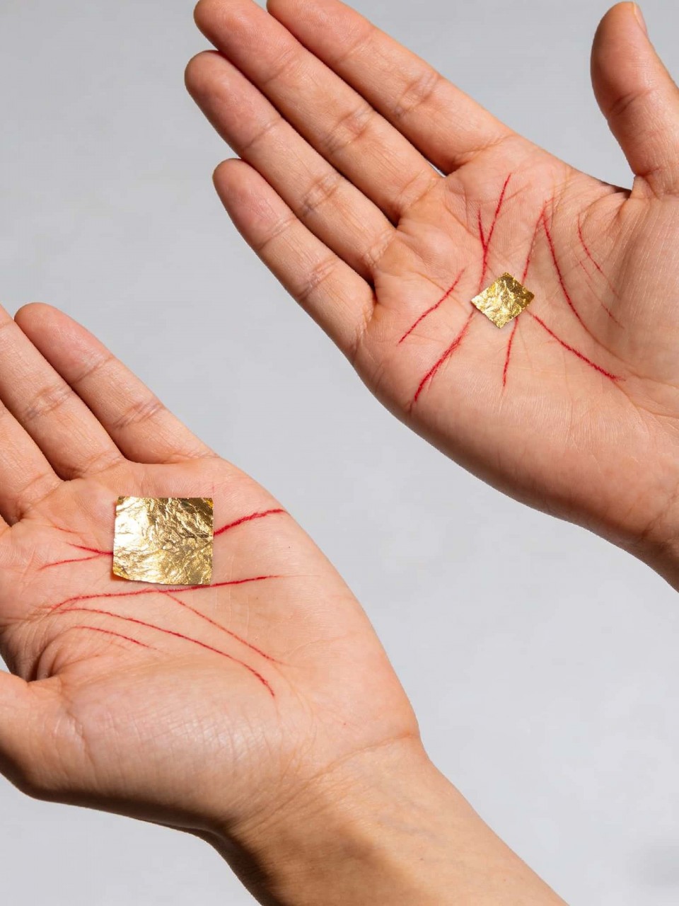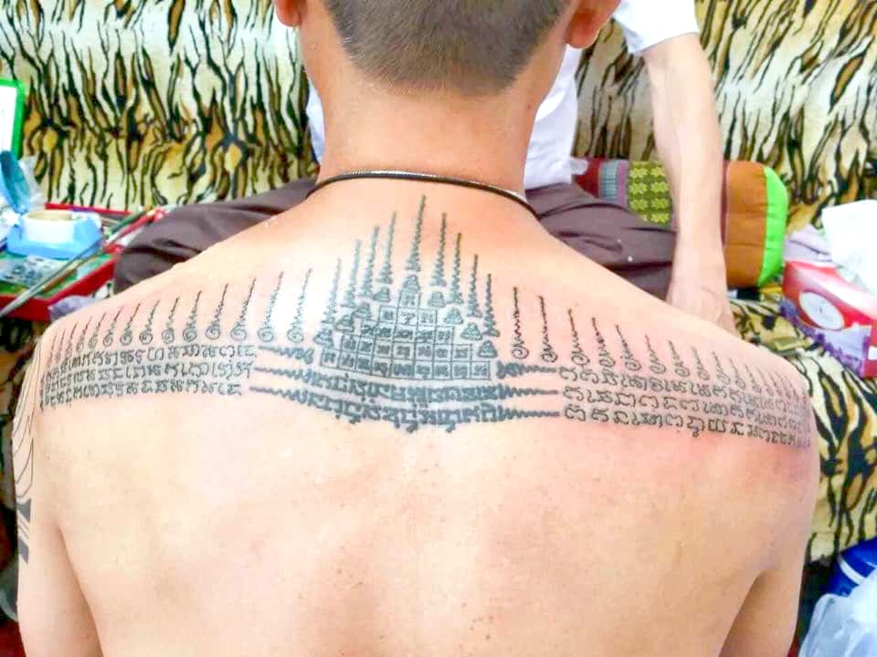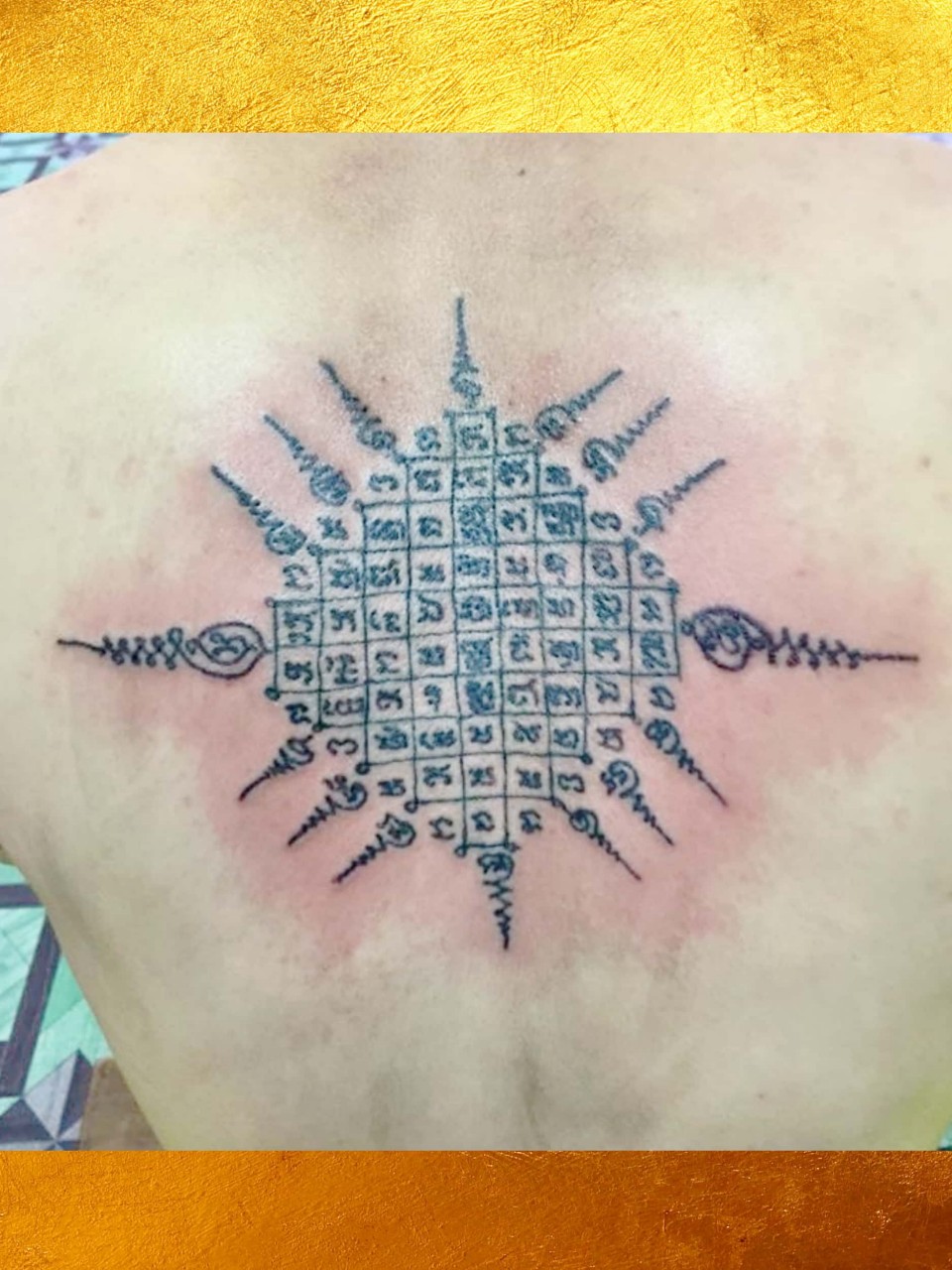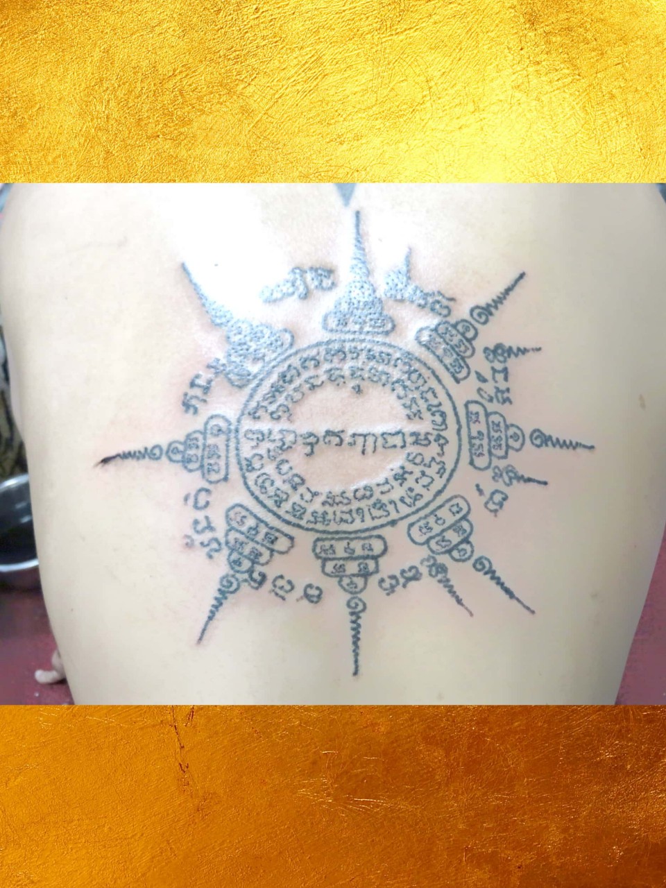 每片金箔都是泰國真金製成,都經過師傅開光加持。師傅會用他們獨有的人緣油或人緣膏塗抹到善信的身上,再因應善信貼金的數量貼上相應的金箔,師傅再將符咒畫到金箔上,金箔便會溶到善信的體內,師傅劃在金箔上的符咒經文也隨之加到善信身上。