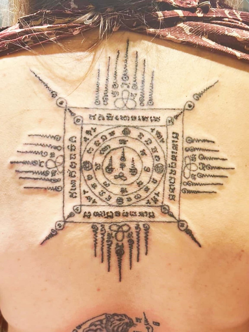 油刺(無色)是用古法金針在身上刺上符印,只是金針上不沾墨水,是使用法油刺上,所以刺出來圖印和符印都是沒有顏色的 ,所有刺符無論有色或油刺(無色),整個過程和功效都是完全一樣的,刺符不論是有色或無色都是永久有效的 此圖印適合刺在腰以下的位置