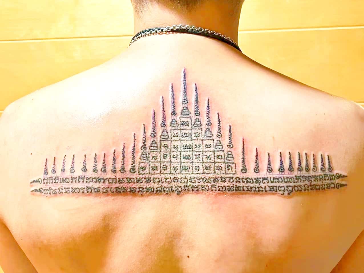 古時的泰國人一般第一個刺符都會選擇師傅符印,而這個二十九層塔是屬於師傅符印之一,就好像一對打開力量泉源的門,亦必定是刺在背部並且是頸對落的位置,可以增強身上其他刺符的力量,二十九層塔代表佛祖庇佑和眷顧,可保佑善信一生平安大吉,而二十九層塔亦有著增強財運、人緣運及保平安、擋小人、防降頭邪術、辟邪驅鬼之功效,二十九層塔符印亦是功效最全面的符印之一,深受善信們的歡迎