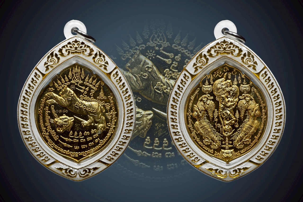 清邁高僧古巴旁舌大師 50歲生日版 斷頭虎(黃銅) 配戴型 連鐳射白色邊防水殼