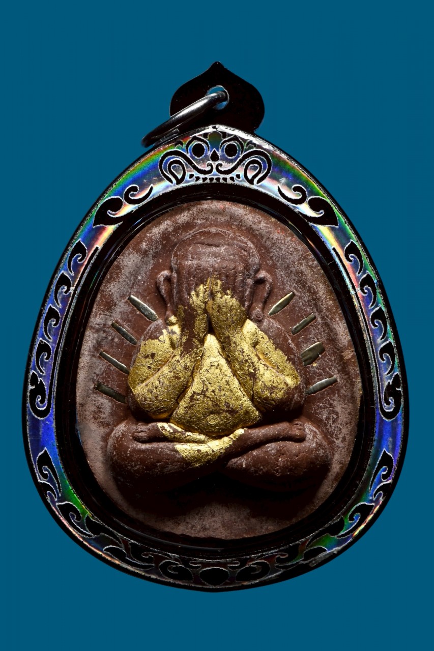 • 【正牌】寺廟屈破錫鐵 龍婆絕大師 雙面必打佛牌 配戴型 連閃銀色邊防水殼(No.28908)