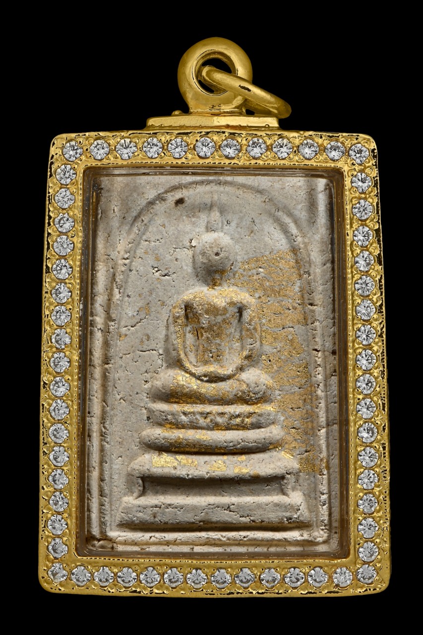 • 泰國佛牌 寺廟屈鐵冠燙 龍婆啤大師 藥師佛 配戴型 附驗證卡 連純銀龍也防水殼(No.23183)