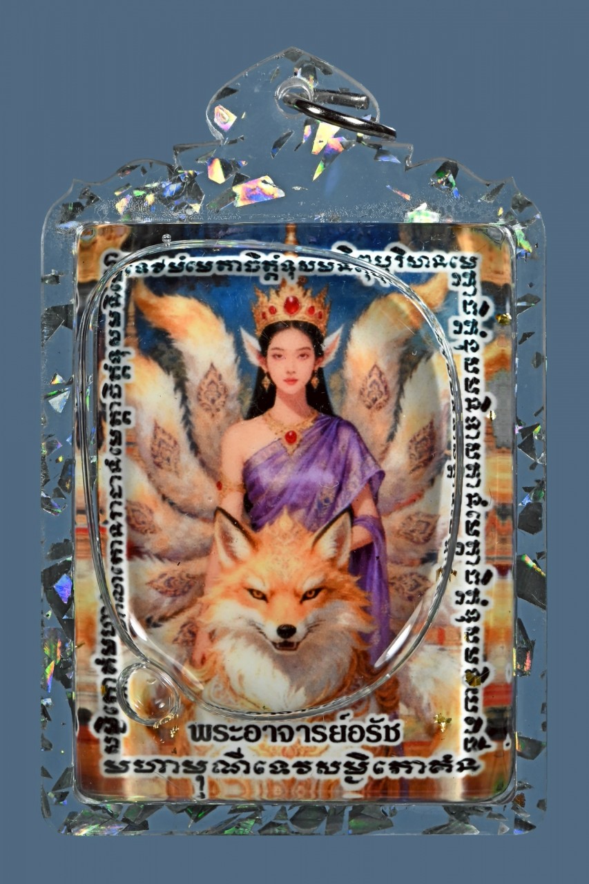 • 【正牌】帕阿贊瓦滑師傅 九尾狐仙 {LOCKET} 人緣油版 配戴型 連透明金閃粉防水殼 (No.30956)