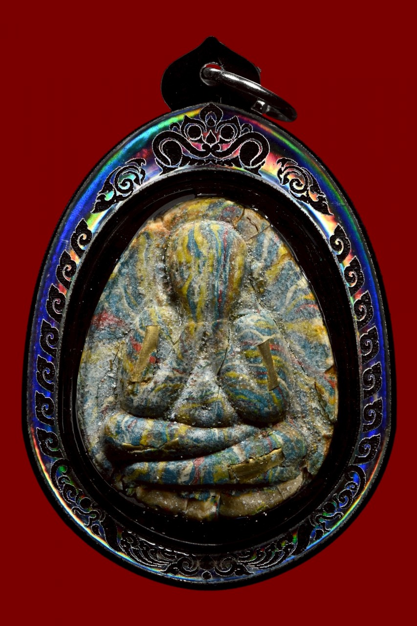 • 泰國佛牌 阿贊喬師傅 (早期)富貴必打【粉綠色彩泥版】配戴型 連透明防水殼(NO.27323)