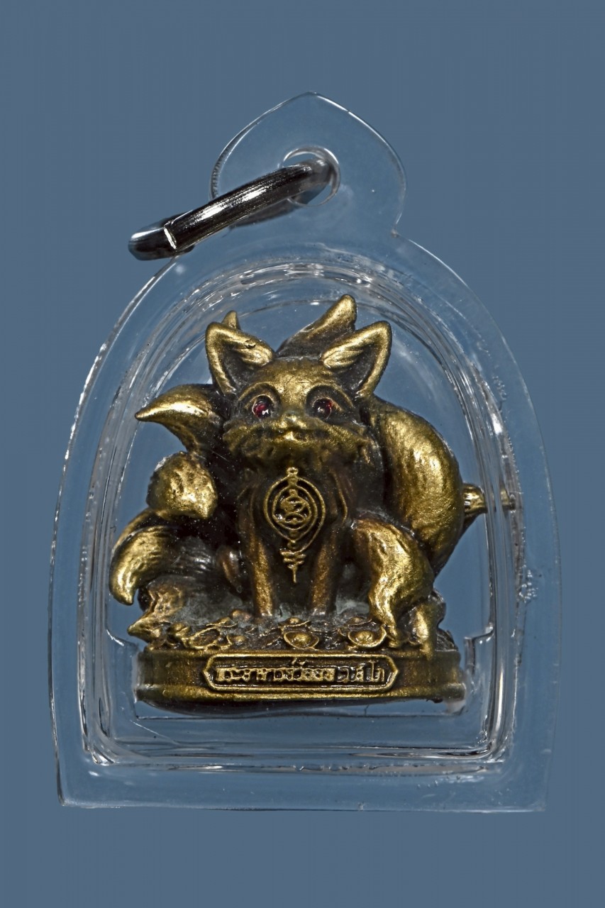 • 【正牌】龍婆拉架大師{柏阿贊運碌}九尾狐仙(黃銅)小立尊 配戴型 連閃金色邊防水殼(NO.28636)