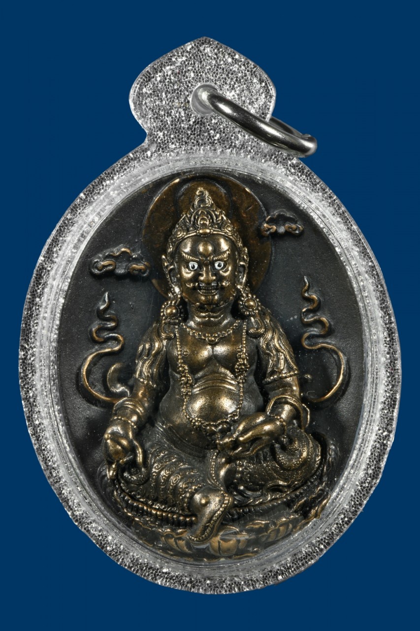 • 泰國佛牌 寺廟屈鐵冠燙 財神爺{黃財神} 配戴型 連閃銀色邊防水殼(No.23578)