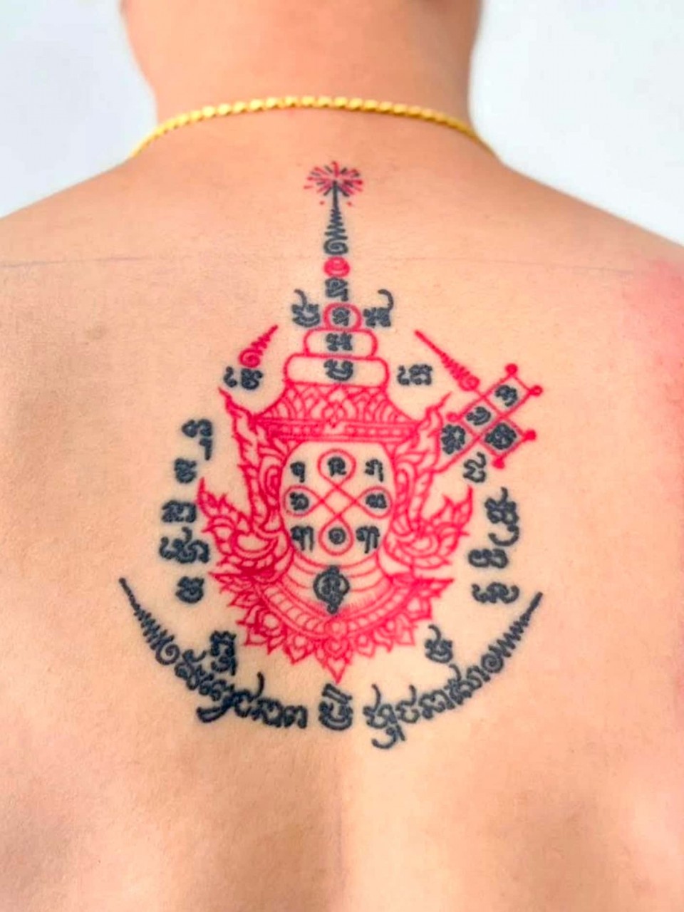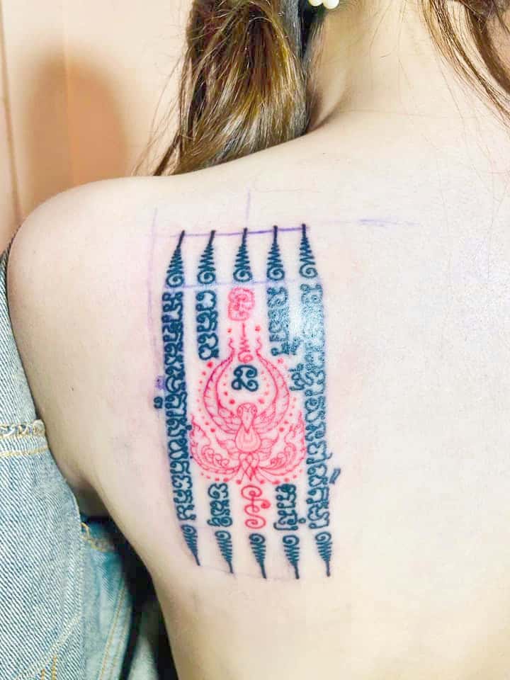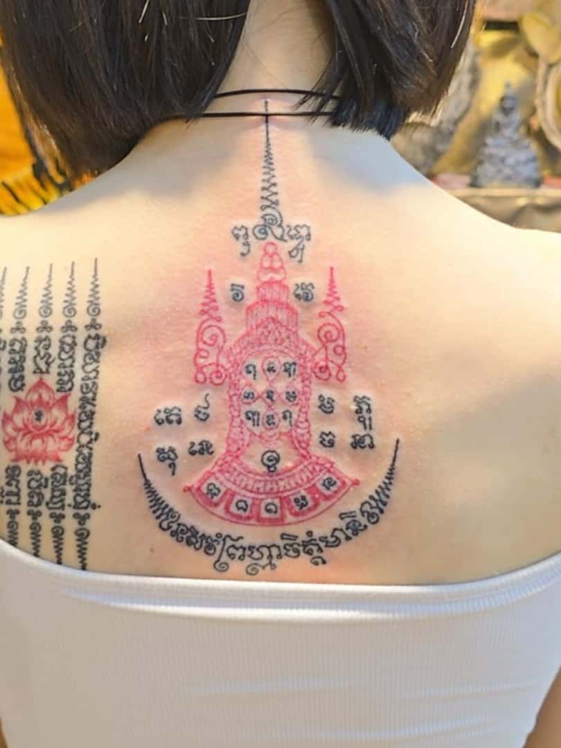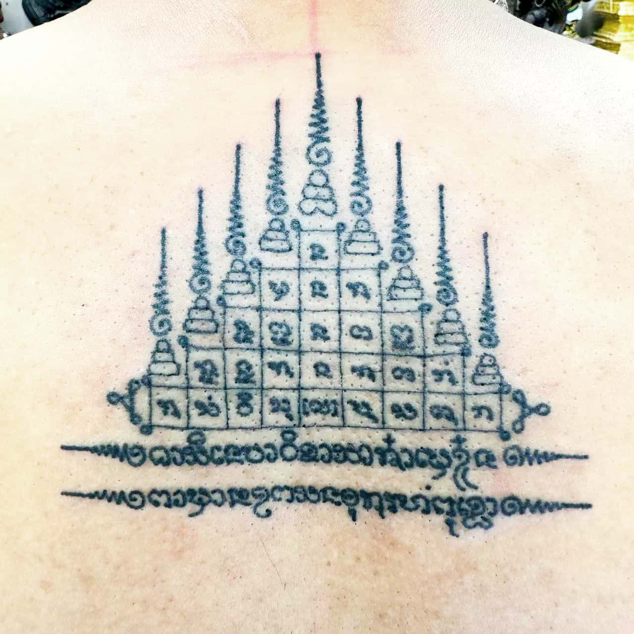 古時的泰國人一般第一個刺符都會選擇師傅符印,而這個二十九層塔是屬於師傅符印之一,就好像一對打開力量泉源的門,亦必定是刺在背部並且是頸對落的位置,可以增強身上其他刺符的力量,二十九層塔代表佛祖庇佑和眷顧,可保佑善信一生平安大吉,而二十九層塔亦有著增強財運、人緣運及保平安、擋小人、防降頭邪術、辟邪驅鬼之功效,二十九層塔符印亦是功效最全面的符印之一,深受善信們的歡迎