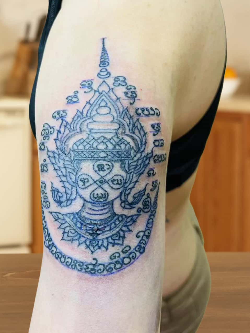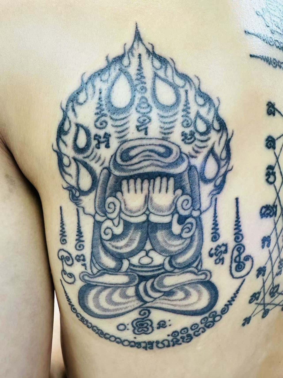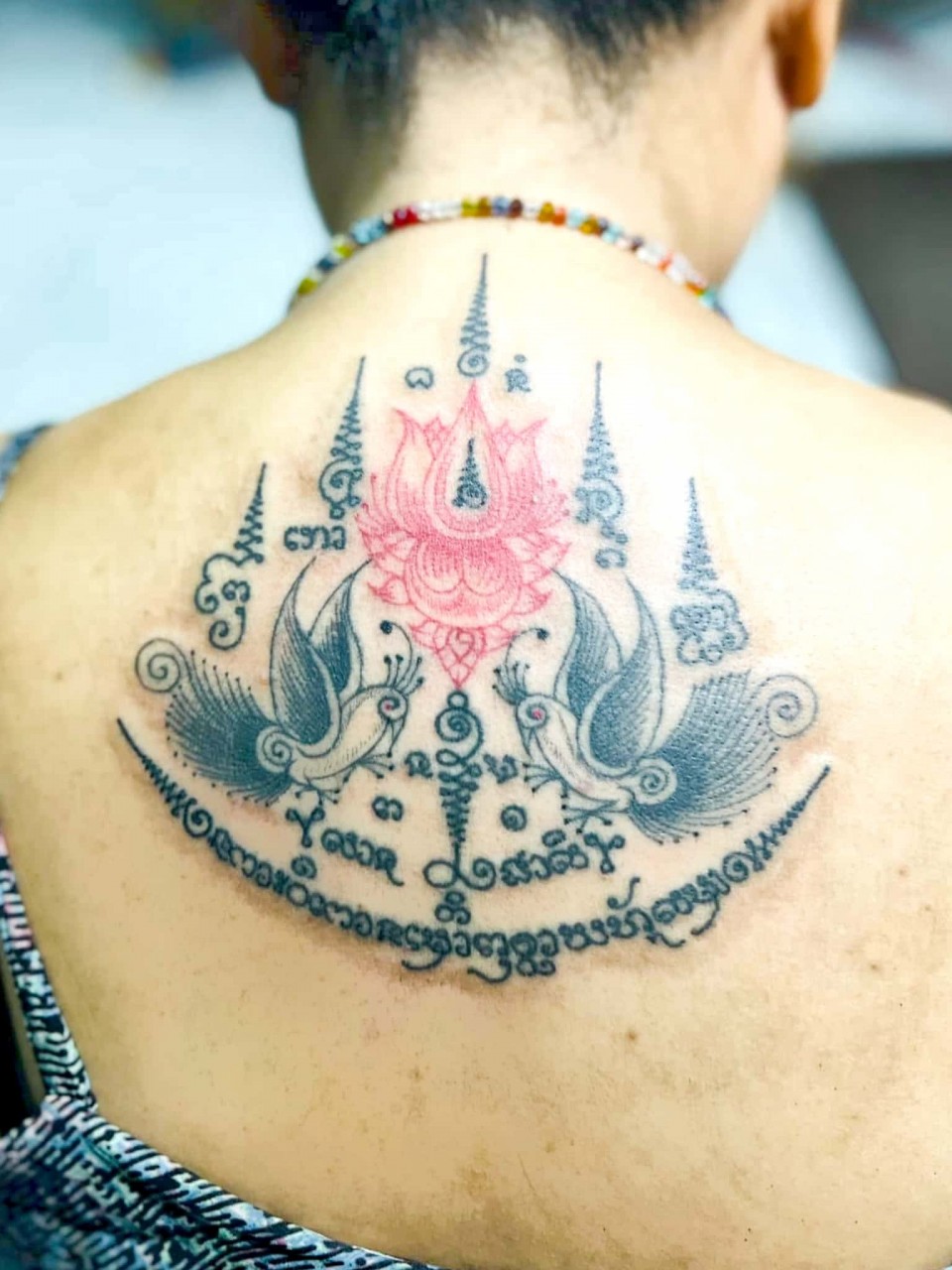 古時的泰國人一般第一個刺符都會選擇師傅符印,而這個二十九層塔是屬於師傅符印之一,就好像一對打開力量泉源的門,亦必定是刺在背部並且是頸對落的位置,可以增強身上其他刺符的力量,二十九層塔代表佛祖庇佑和眷顧,可保佑善信一生平安大吉,而二十九層塔亦有著增強財運、人緣運及保平安、擋小人、防降頭邪術、辟邪驅鬼之功效,二十九層塔符印亦是功效最全面的符印之一,深受善信們的歡迎