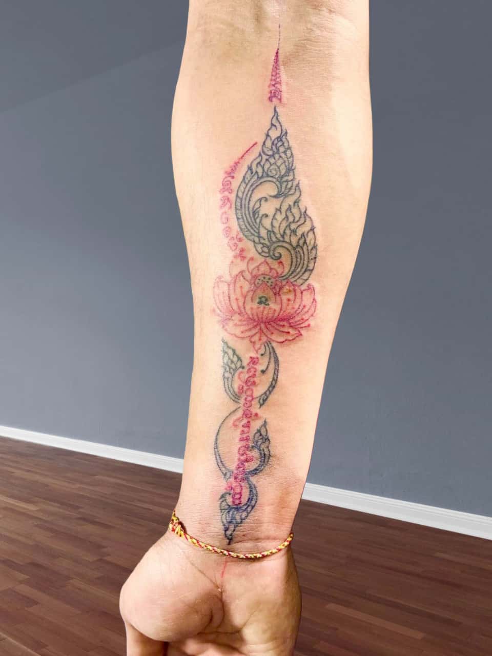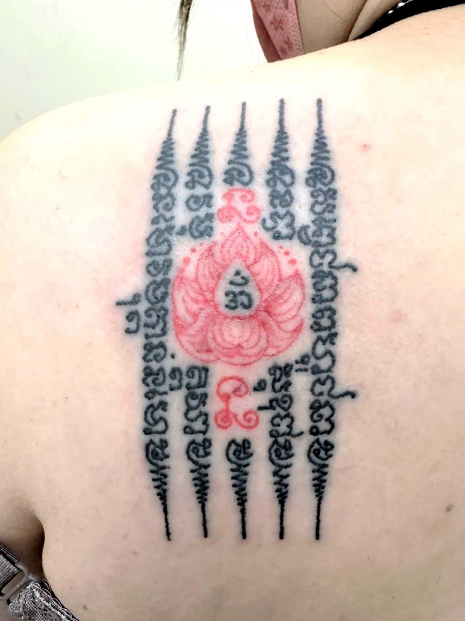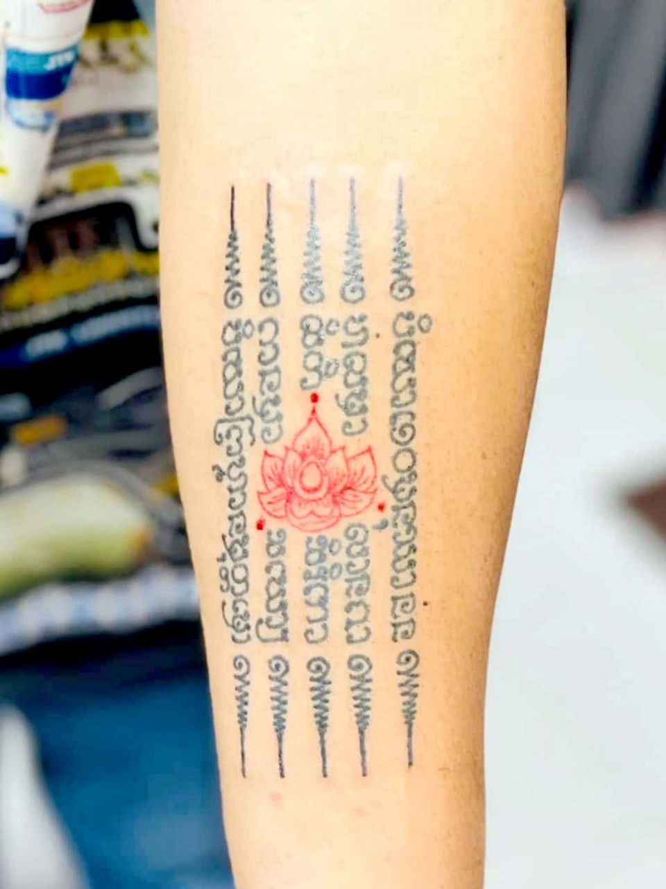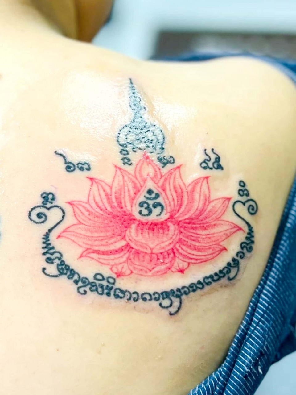 蓮花五條經文就是在五條經文上加上蓮花,而蓮花就是增強財運及人緣運,並且加上五條經文,本身有著財運、人緣、擋險、健康、升運的功效