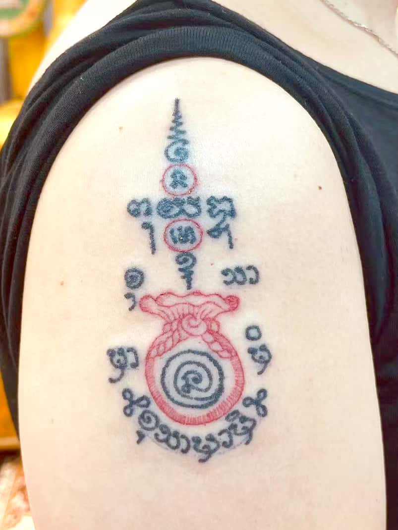 印布班拜符咒有著強勁的招人緣、招異性緣、提升個人魅力、愛情和合的功效,能令身邊異性及伴侶對自己更加有好感、很想親近你、很想愛錫你、伴侶不論是時間還是金錢都願意為了你甘願付出更多,甚至精神上都會朝夕思念著你、更珍惜你,這個符印是一個非常強效的人緣符咒,適合任何人仕刺上,有色或油刺(無色)均可選擇