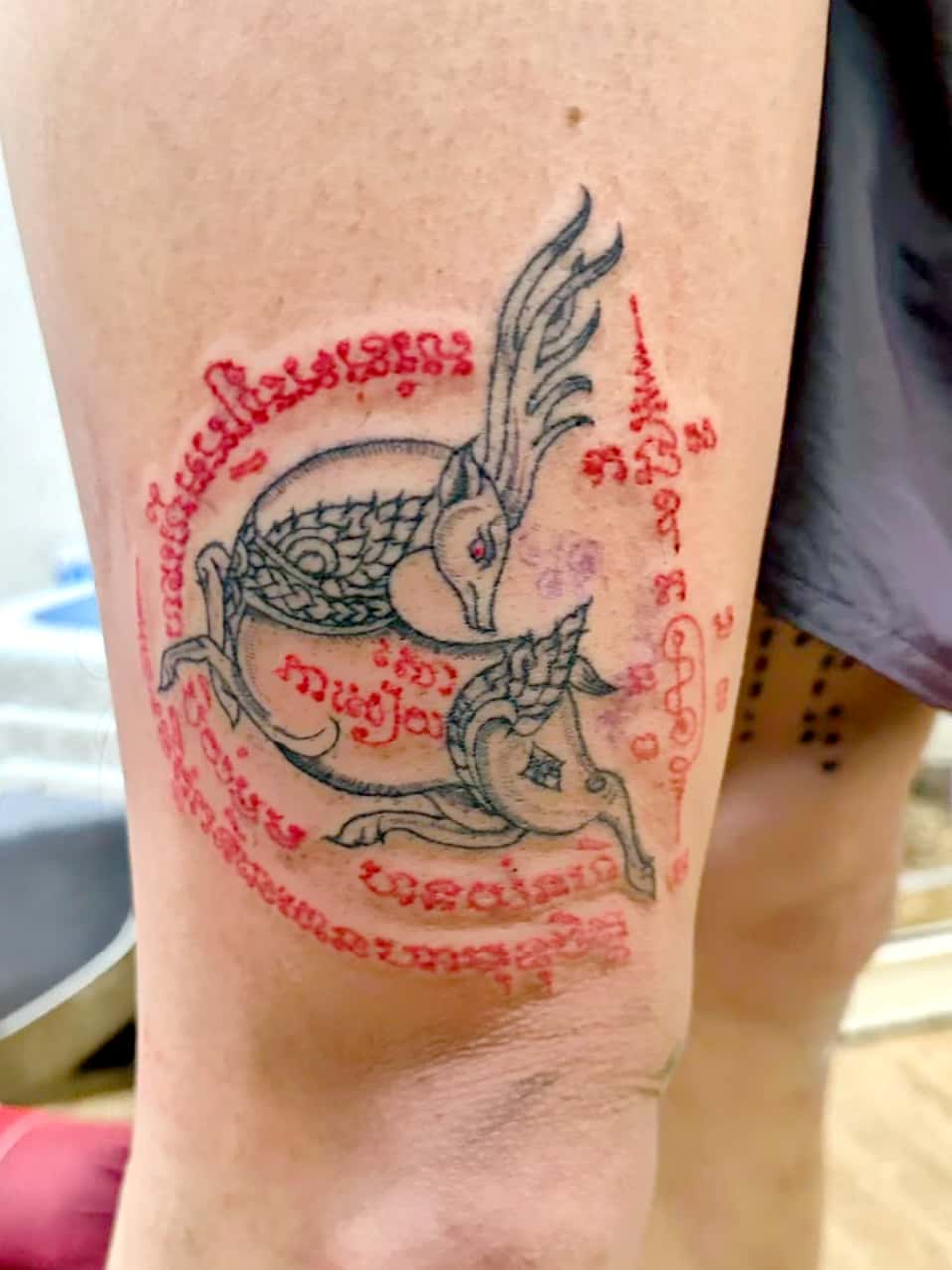 麒麟在泰國叫作(醒),在泰國麒麟被視為神獸,代表吉祥順利和錢財豐收,而師傅用上了招財法門及經文,能為善信提升財運及帶來豐厚收入、增強權力、地位、威嚴和說服力,得到別人的尊重,令善信工作及生意更上一層樓,增強生意運、財運、偏財運及橫財運並為善信帶來豐厚的財富收入