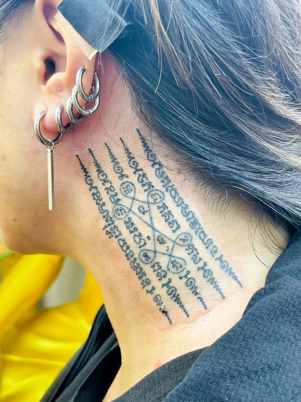 (注意: 如刺符位置在頸部左右兩側、口嚨及附近位置、耳背、鎖骨、腰兩側、上臂內側、(夾甩底[腋窩、腋下]對落)、手踭,手踭內側既摺位,需加收附加費用HK$500,因為刺符難度大及所需要時間更長)