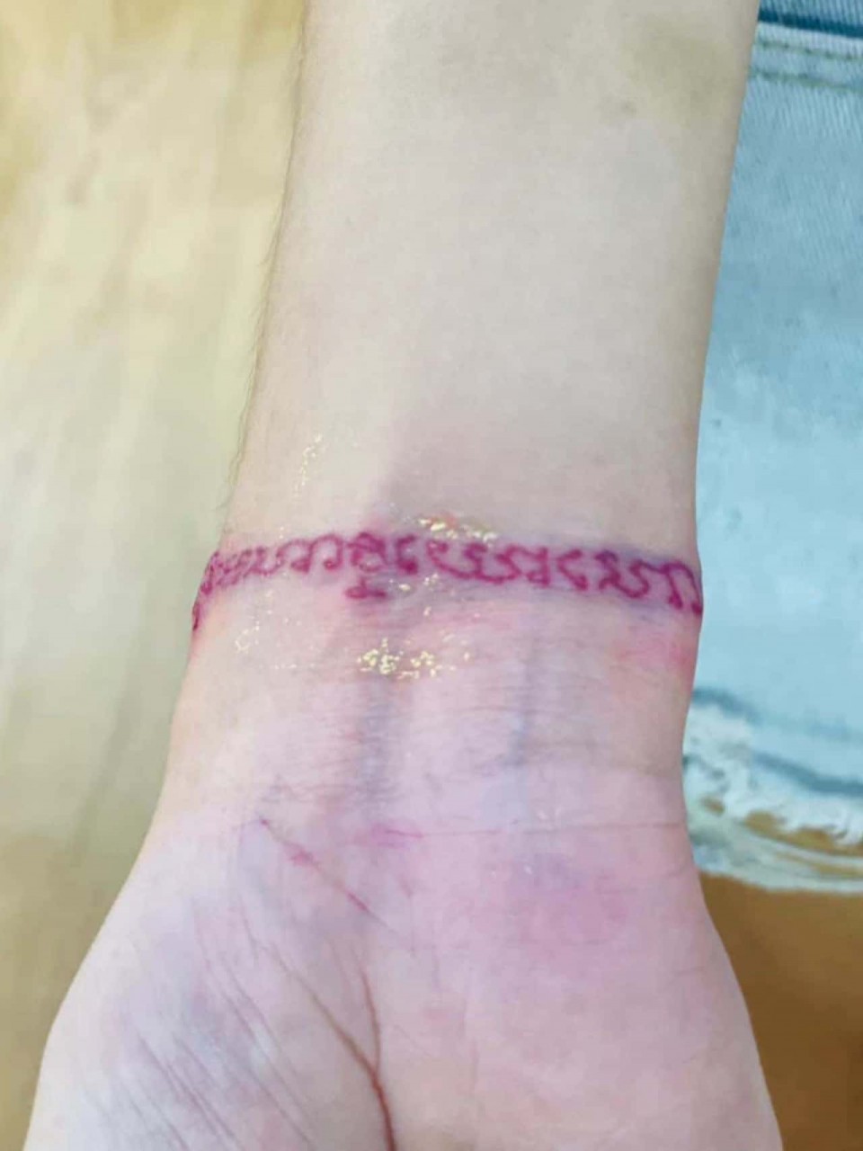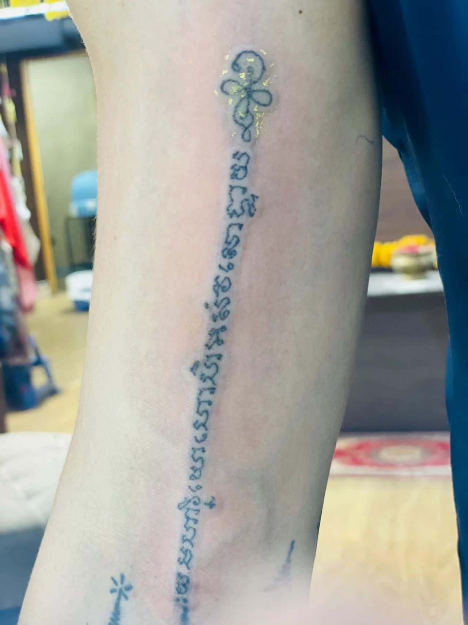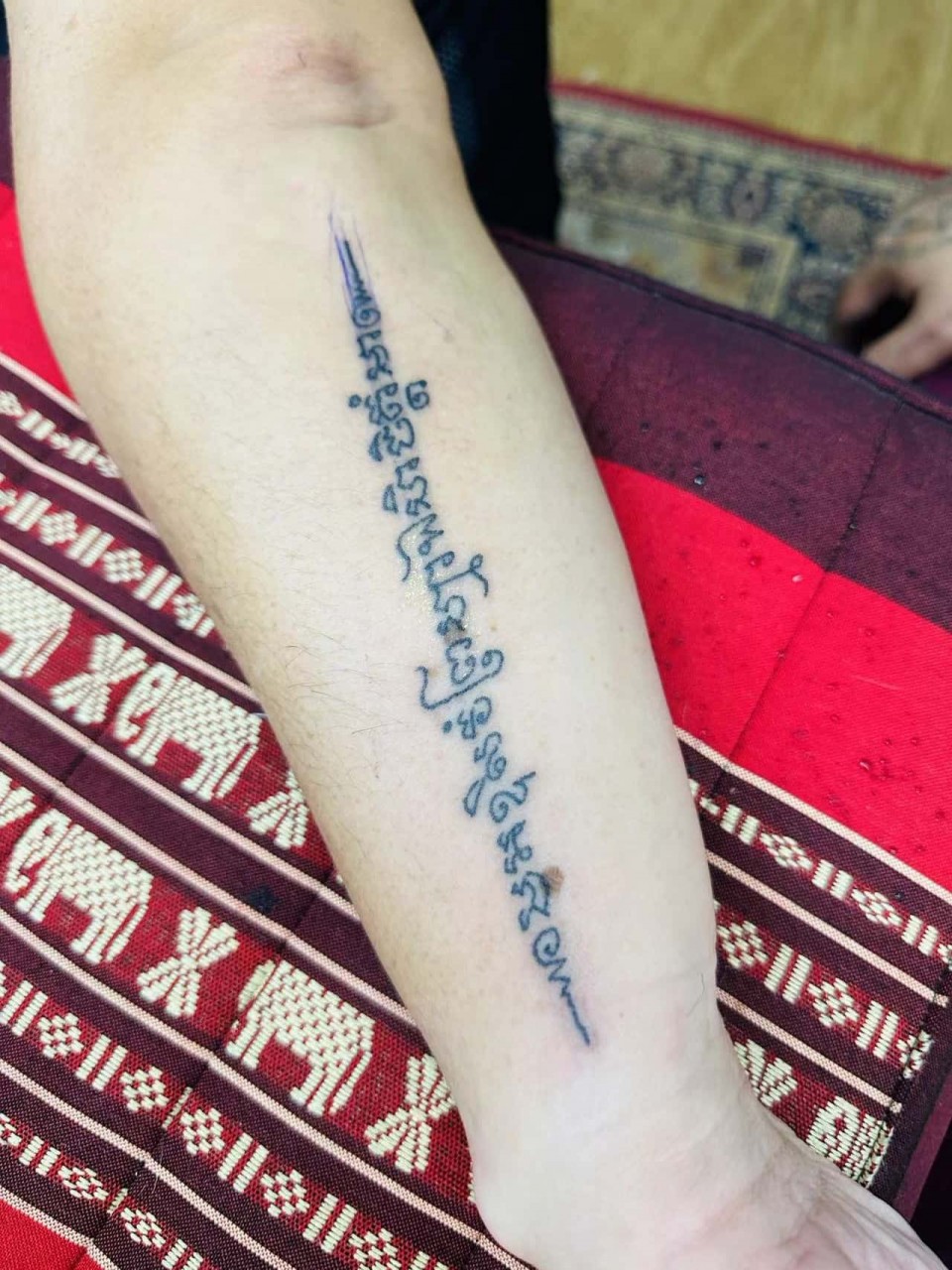 一條經文刺在前臂 男女同價供金:HK$1200(如圖中一樣大小)