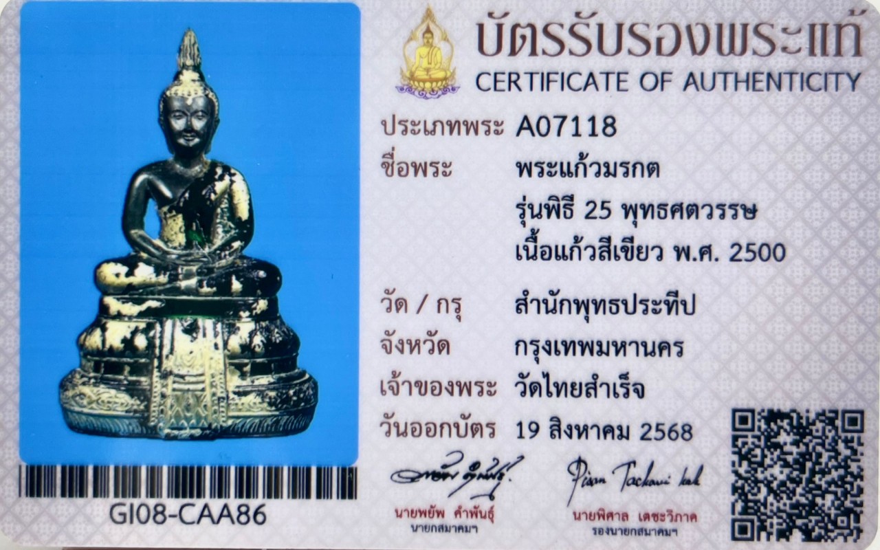 寺廟沈甩潑他白貼 第25屆佛教儀式 玉佛 供奉型 附泰國權威驗證機構沙瑪公驗證卡 鑑定真品