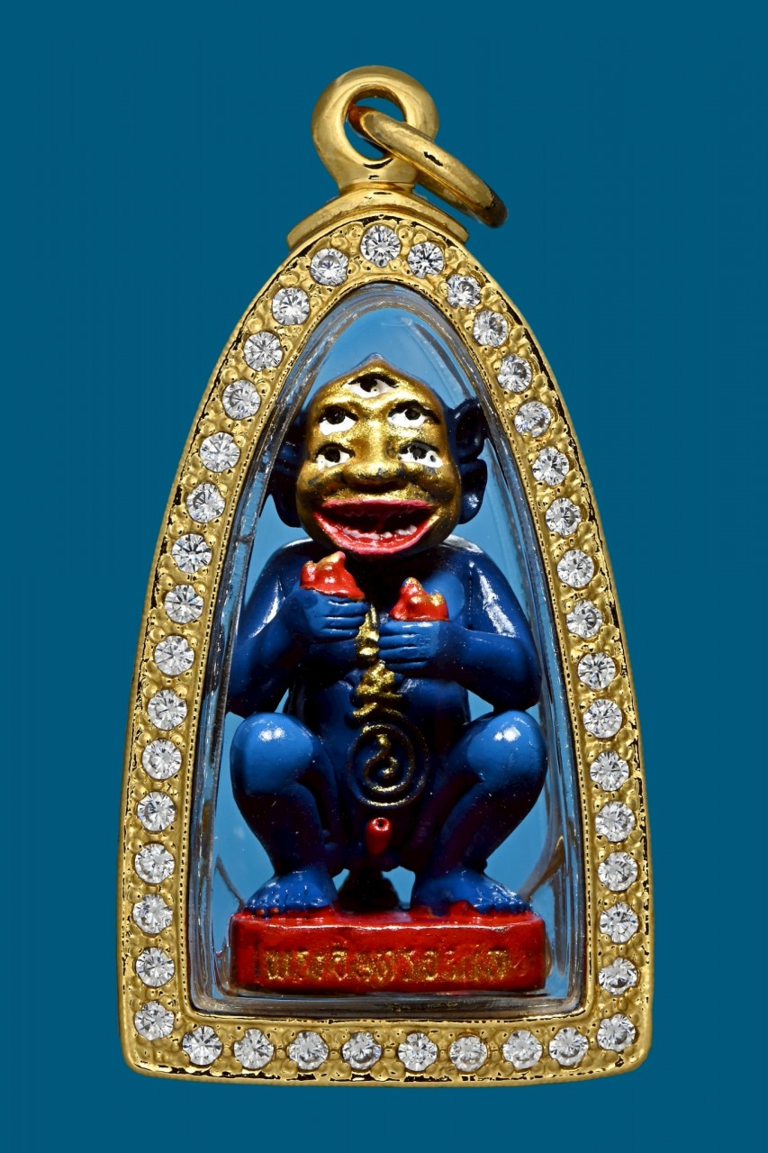 寺廟屈墟喃蕹 古巴博洋大師 2566 五眼四耳天神【藍色彩繪版】配戴型 連意大利金鑽防水殼