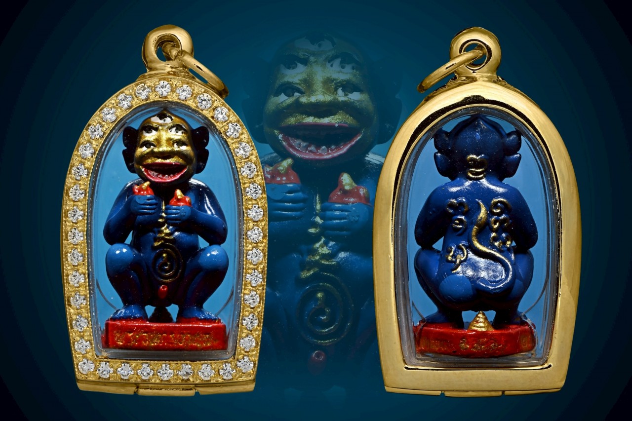 寺廟屈墟喃蕹 古巴博洋大師 2566 五眼四耳天神【藍色彩繪版】配戴型 連意大利金鑽防水殼