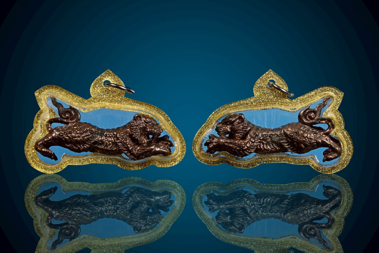 清邁高僧古巴旁舌大師 2562年拜師大法會 捨KONG 老虎 小立尊(紅銅版)配戴型 連閃金色邊防水殼