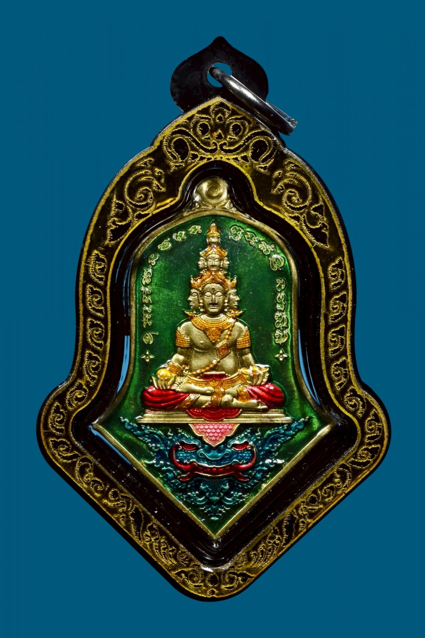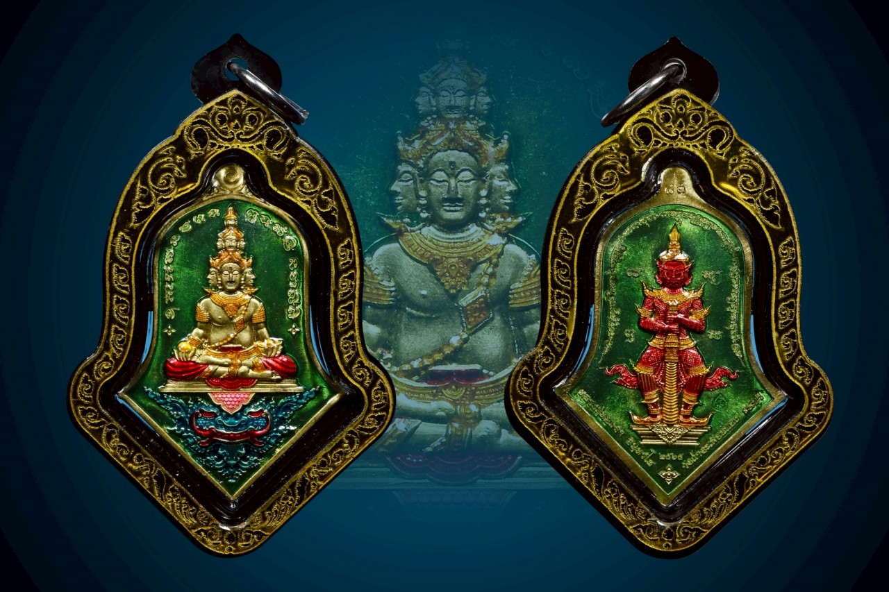 【正牌】寺廟屈氹特片燙 龍婆通丹大師 九面佛後鬼王 (綠色版) 配戴型 連金色鐳射防水殼(No.30810)