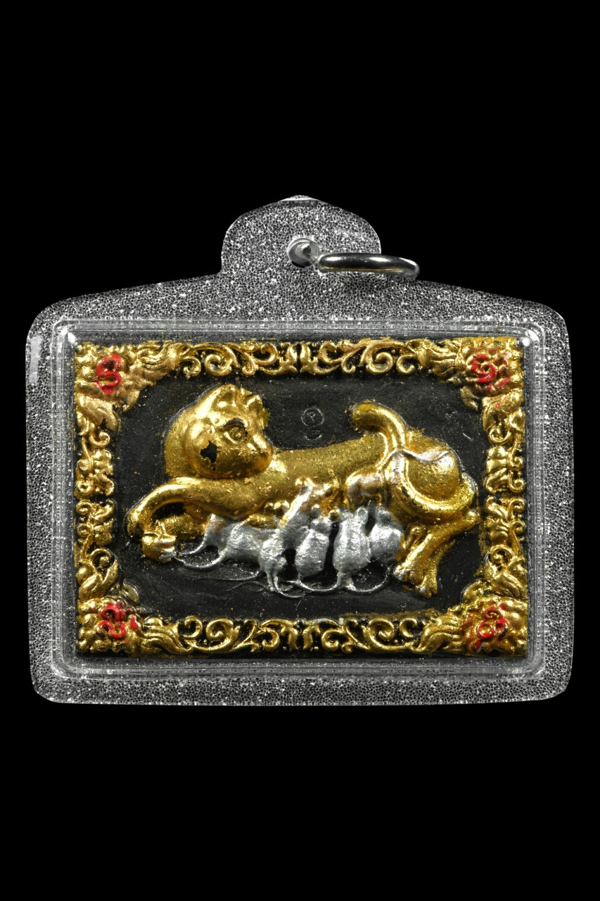 【老鼠吃貓奶】功效非常全面背後都是師傅親自刻的符管,貓在泰國寓意招財,泰國很多招財功效的法物都來源於貓,貓和老鼠本身就是天敵,此法相第一寓意著母愛的無私,然後我們走到哪裡都可以獲得諒解,仁慈,雖然是天敵,但是母貓看見弱小的老鼠仔不但不殺死還用奶來餵養小老鼠,第二寓意法術麻哈尼勇的強大,可以讓相剋的東西不排斥並且融合,寓意敵人都可以變成朋友,吸引強大的財富,人緣及異性緣。