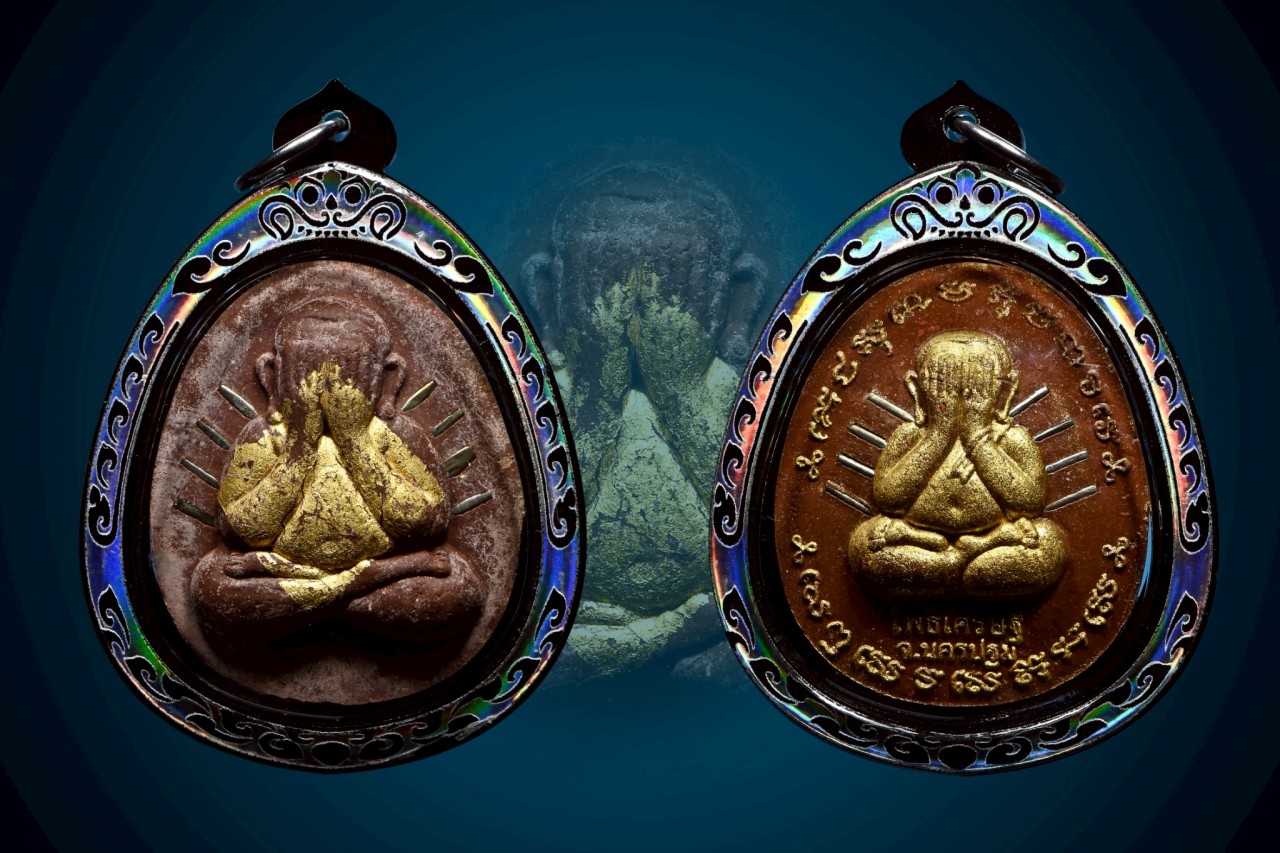 寺廟屈破錫鐵 已故高僧龍婆絕大師 雙面必打佛牌 配戴型 連銀色鐳射防水殼