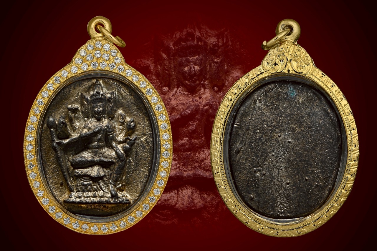 寺廟屈班冠力燙 龍婆浸蘭大師 四面神 配戴型 連意大利金鑽防水殼