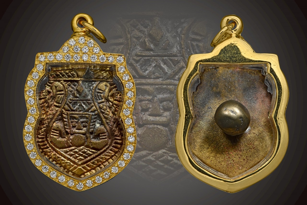 寺廟屈班冠力燙 龍婆浸蘭大師 拉胡天神 後水銀食金符珠 配戴型 連意大利金鑽防水殼