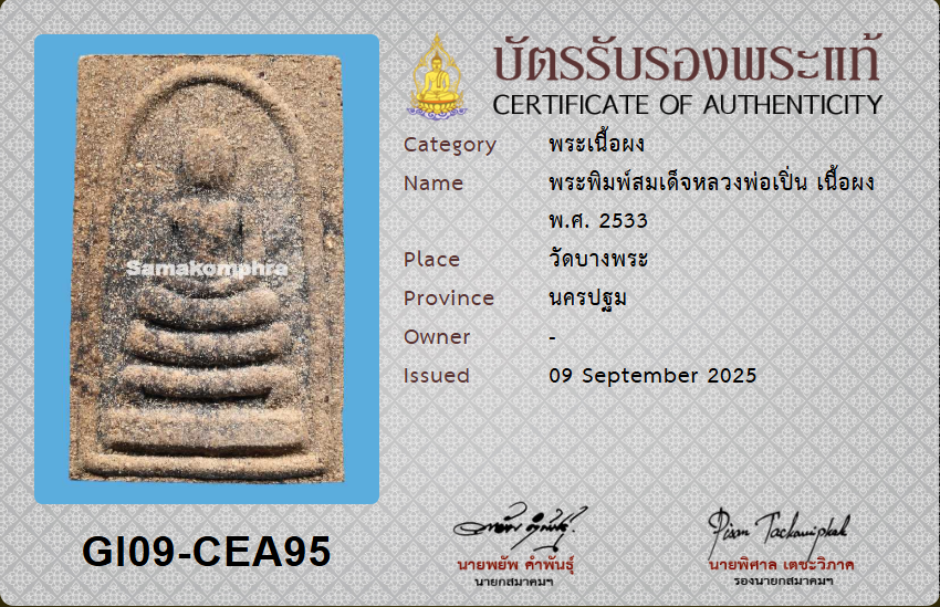 如需要核對鑑定了的佛牌聖物 可到驗證機構官方網站上 輸入驗證卡上佛牌圖片下方的獨有編號 就會顯示出鑑定了的佛牌詳細資料