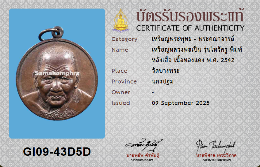 佛曆 : 2523年 由龍婆笨大師親自開光加持