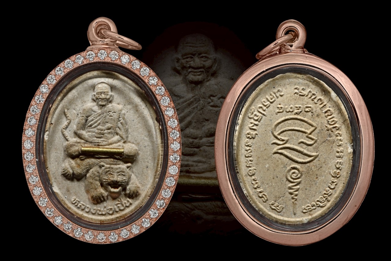 屈班帕(老虎廟) 龍婆笨大師 自身騎虎 (金符管版) 附沙瑪公驗證卡 配戴型 連意大利玫瑰金鑽防水殼