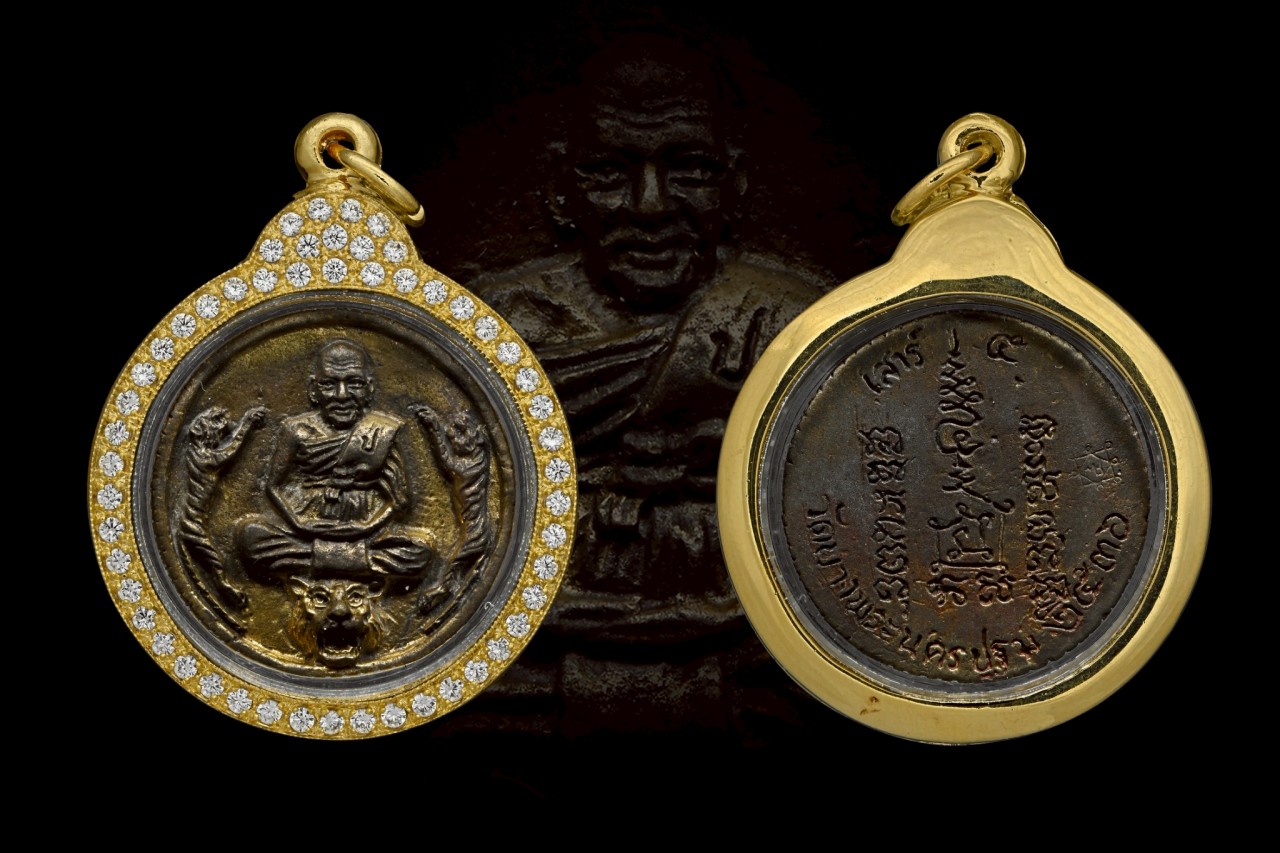 屈班柏(老虎廟) 龍婆笨大師 自身騎虎 附驗證泰國權威驗證機構沙瑪公驗證卡 鑑定真品 配戴型 連意大利金鑽防水殼