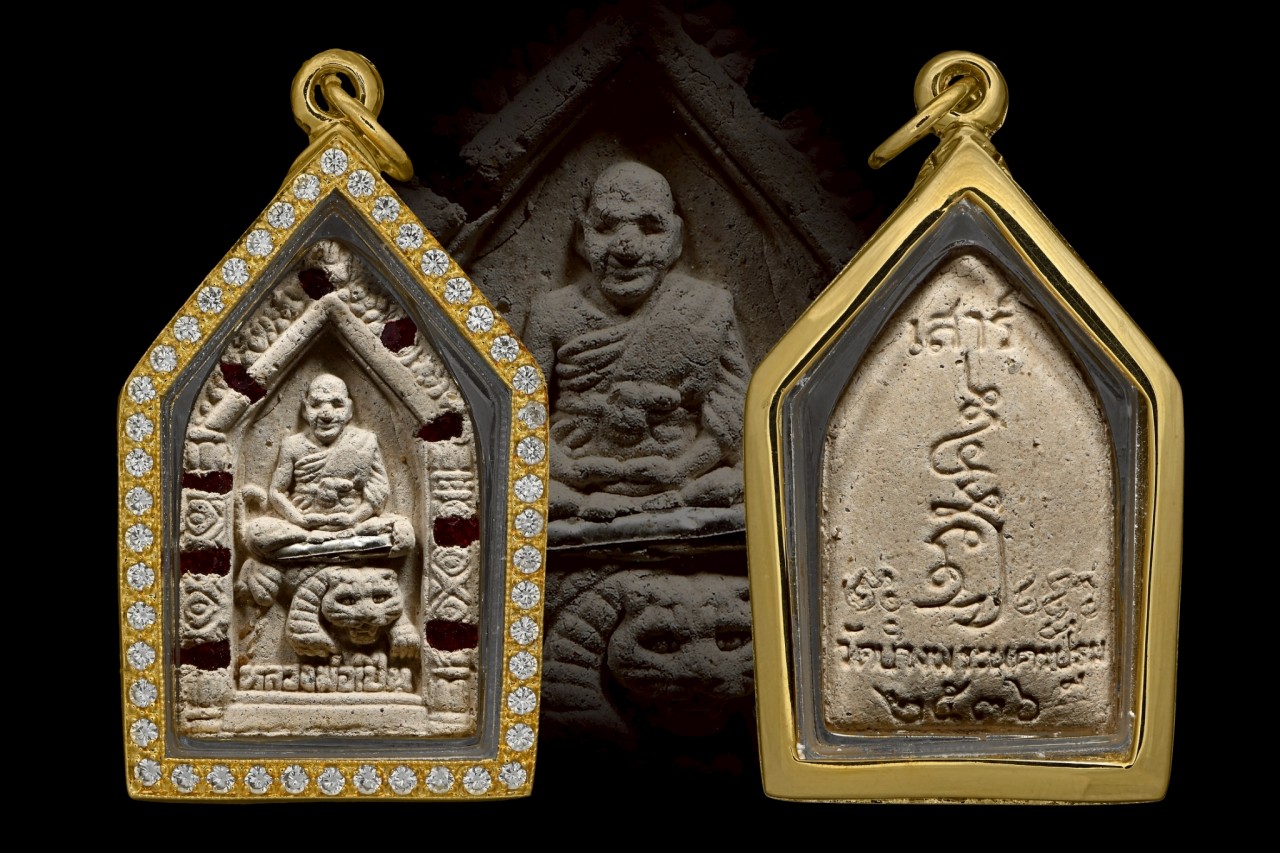 屈班帕(老虎廟) 龍婆笨大師 自身騎虎 (寶石版) 附沙瑪公驗證卡 配戴型 連意大利金鑽防水殼