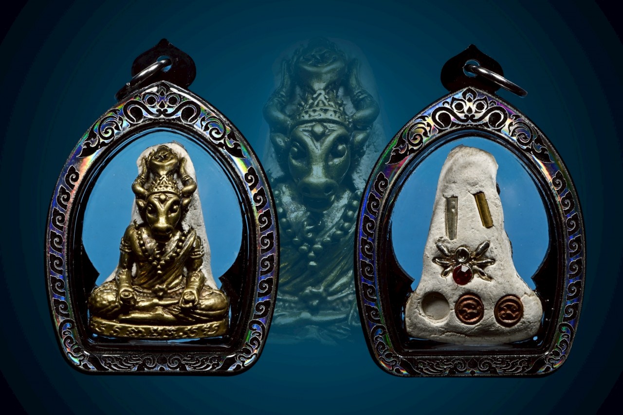 皇家御用法力大師 阿贊喬師傅 {早期} 牛魯士 小立尊 配戴型 連銀色鐳射防水殼