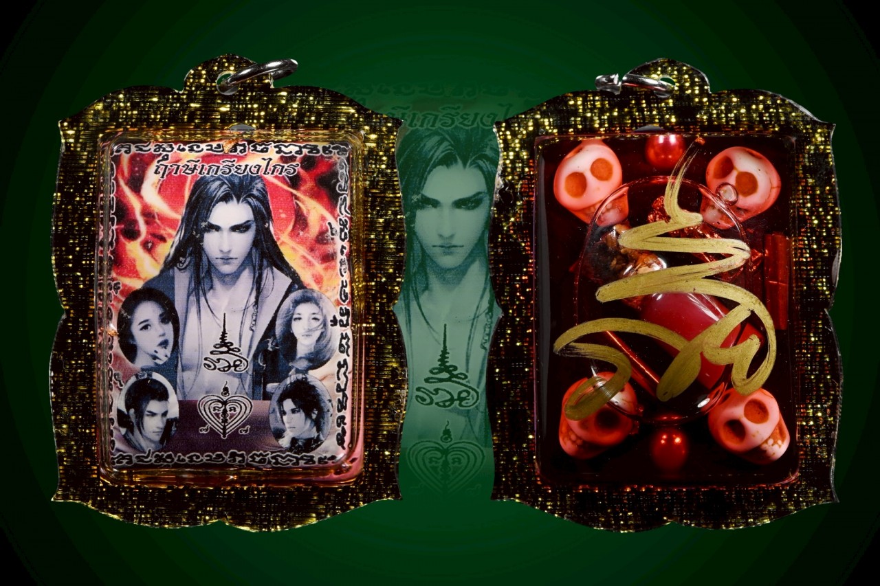 材料 : 狐仙LOCKET 牌後藏入 香灰 廟泥 經粉 招財符通 人緣魅力符通 人緣膏 四個骷髏頭 和合燕通小立尊 天然礦石 注入人緣油 及師傅親筆人緣符印