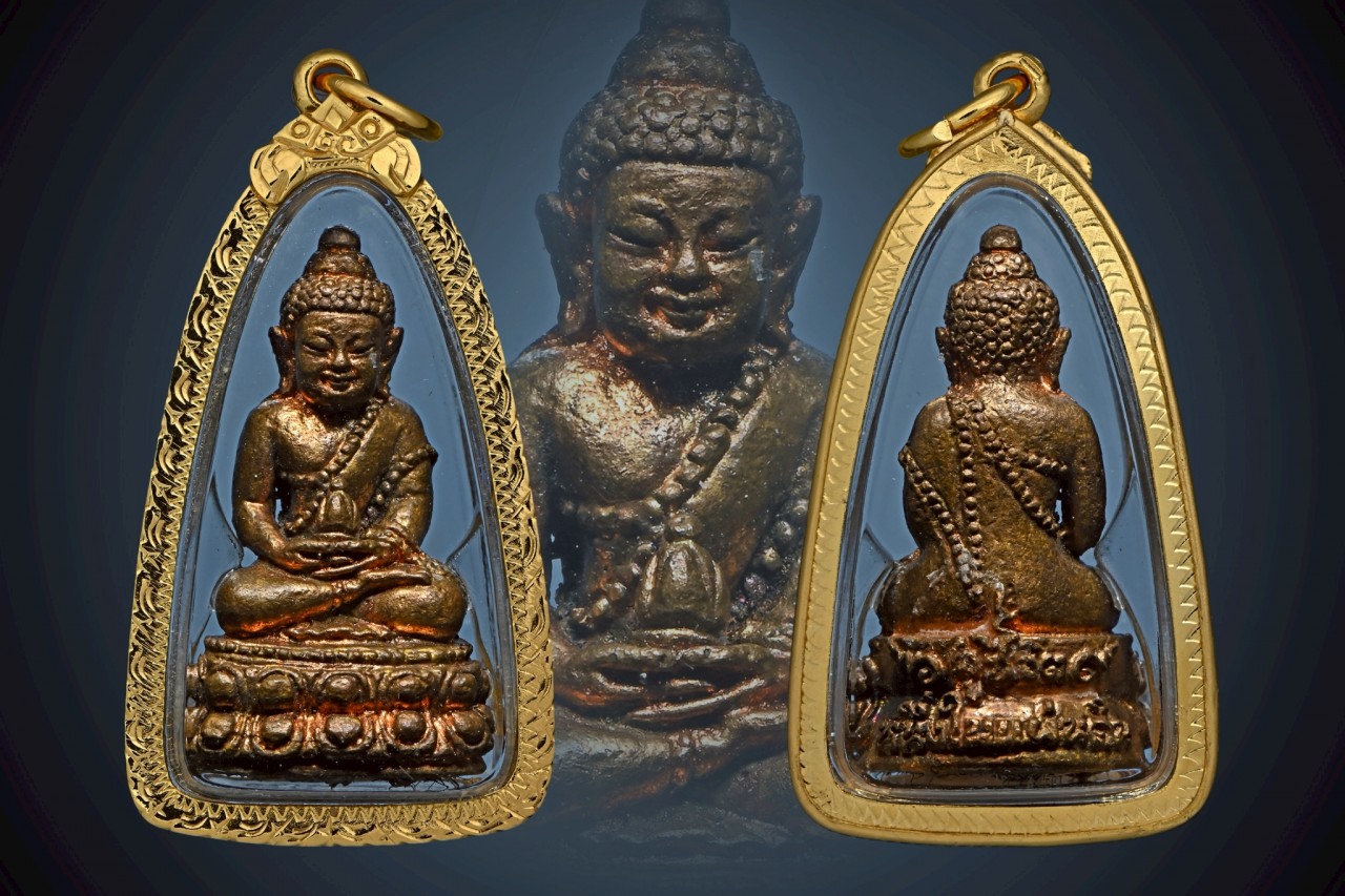 材料 : 古舊聖銅製 底部內 有39位聖僧髮碎(包括龍婆滿大師)、經灰、舍利子、草藥、自然死亡的象牙粉 、水牛角粉、虎牙粉、鹿角粉、黑熊牙粉。