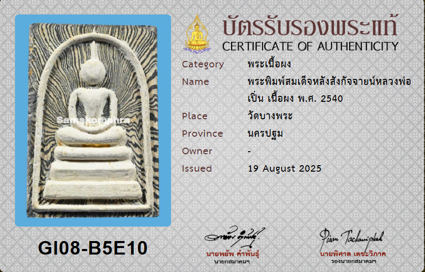 如需要核對鑑定了的佛牌聖物 可到驗證機構官方網站上 輸入驗證卡上佛牌圖片下方的獨有編號 就會顯示出鑑定了的佛牌詳細資料