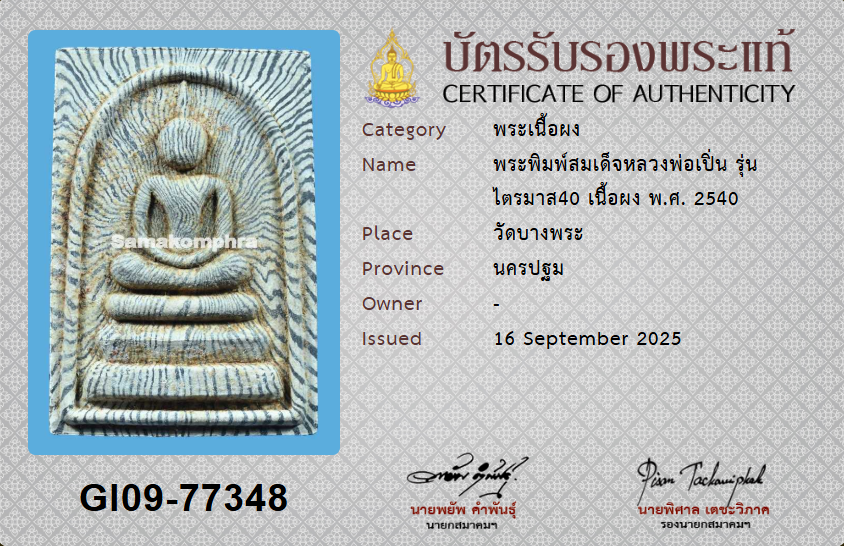 如需要核對鑑定了的佛牌聖物 可到驗證機構官方網站上 輸入驗證卡上佛牌圖片下方的獨有編號 就會顯示出鑑定了的佛牌詳細資料