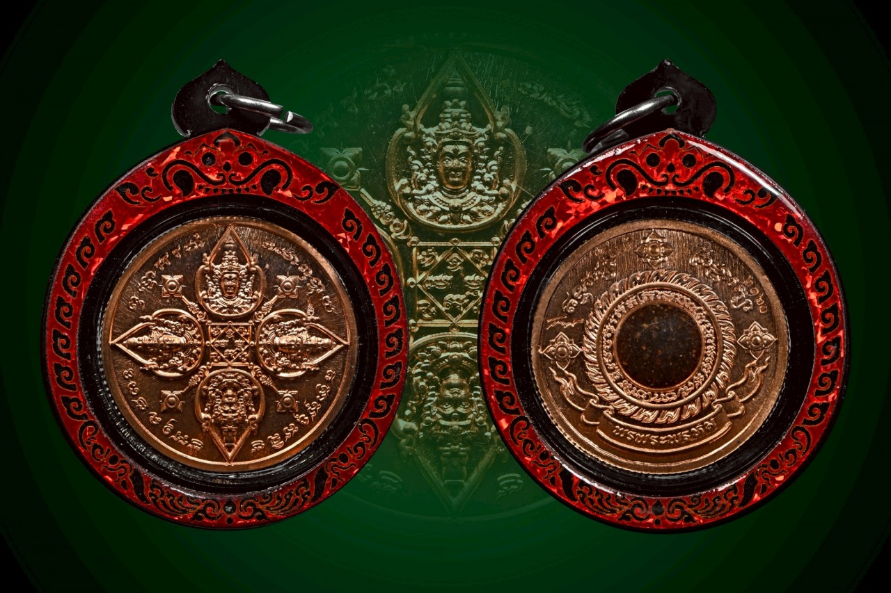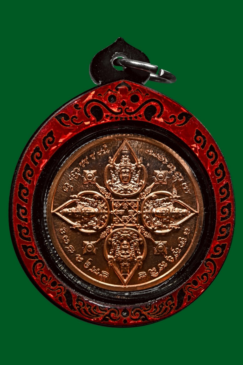 材料 : 圓形紅銅 佛珠、古牌碎片、聖水、聖土、聖灰、古代金屬符片、金箔、花粉、古廟瓦、經灰、經土等168種聖物