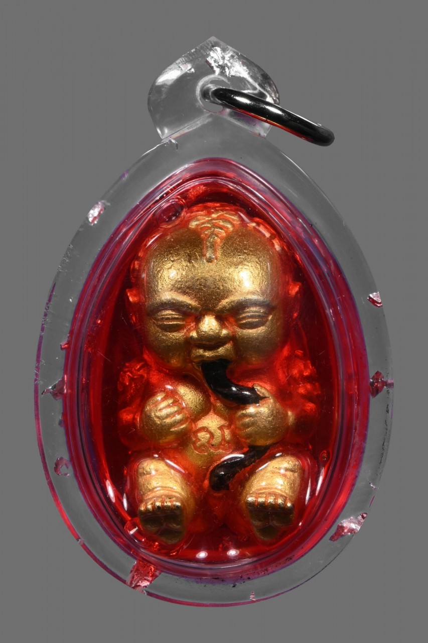 寺廟屈班格錫通石鐵 高僧龍婆靚大師【早期】古曼童咬臍帶 配戴型 連透明防水殼